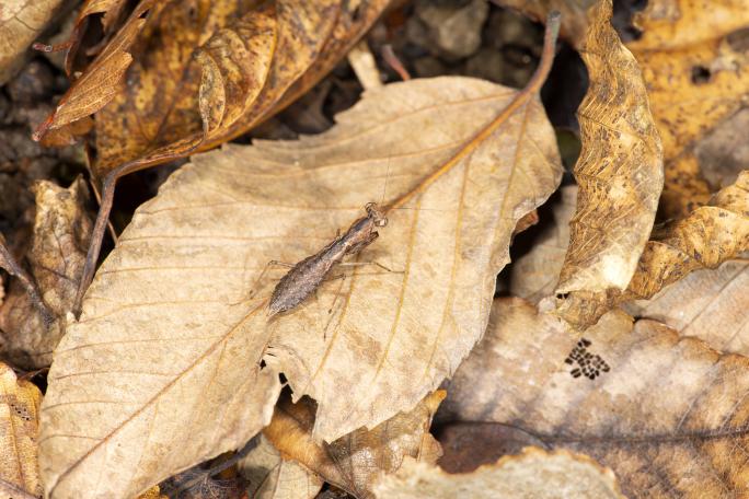 日本で一番小さいカマキリです。成虫になっても体長は2cm程度です。森の中の枯葉の上に生息しています。成虫になっても、他の種類のように翅が長くは伸びません。