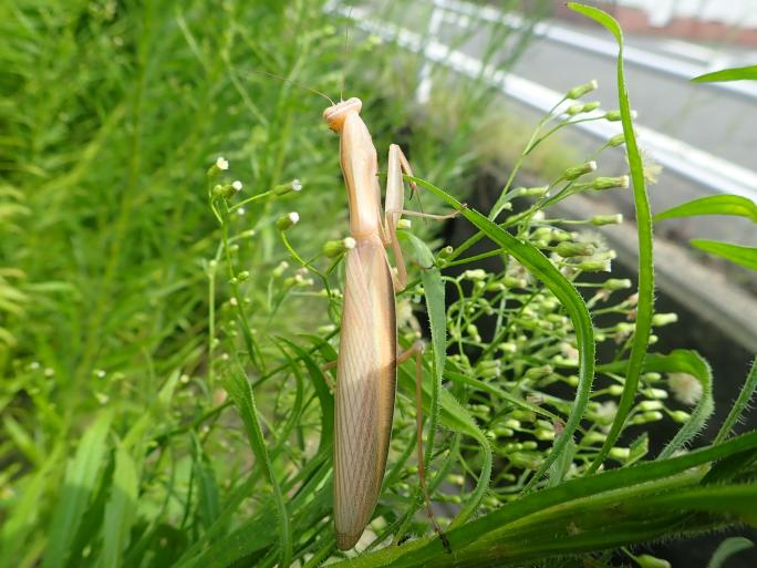 体が透き通った色をした非常に美しいカマキリです。限られた環境にしか生息していないため、なかなか出会うことが難しいカマキリです。開発によって数が減ってきているカマキリです。