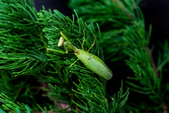 実はあまり知られていないことですが、カマキリを探すのは昼よりも夜の方が圧倒的に簡単です。筆者の経験では、夜に探した方が昼の何倍もの数のカマキリを簡単に見つけられます。カマキリは昼も夜も活動をしますが、やはり昼の方が外敵に狙われやすいため、非常に警戒をしていることから見つけづらいのではないかと考えています。それに対して夜は、堂々と植物の上を歩いていることが多いため、懐中電灯などで草むらや木を照らすと簡単に見つけることができます。