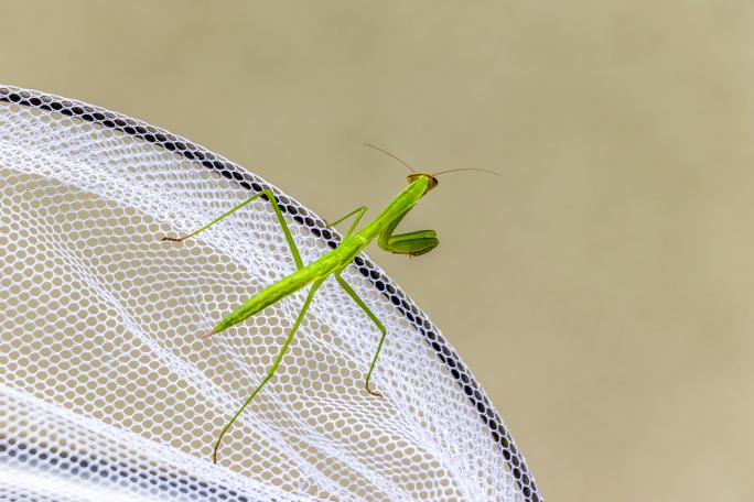 カマキリの動きはそこまで早くないため、慣れれば手で捕まえることもできますが、前脚のカマで指を挟んでくることも多いため、網やボトルを被せて捕まえることをお勧めします。またカマキリは驚くと下に落ちて逃げることが多いです。深い草むらの中に落ちてしまうとそのまま逃げられてしまうことも多いため、手で捕まえる際は下に網を入れてから手を伸ばすと、その網の中にカマキリが落ちることあります。