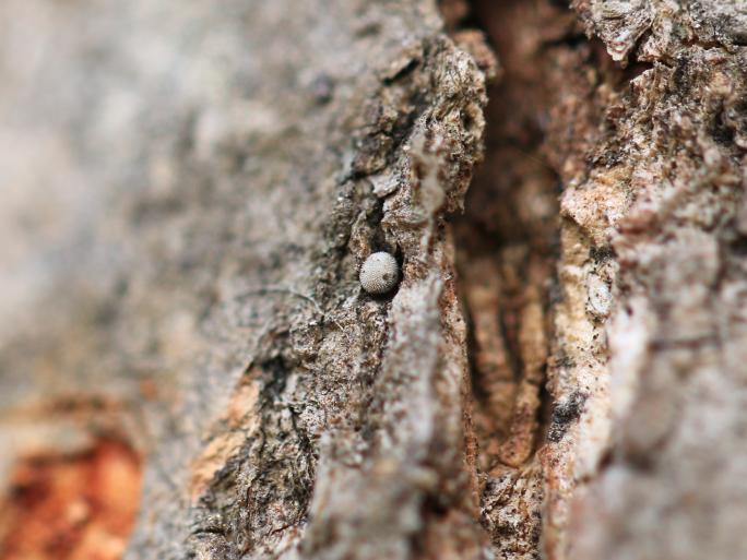ウスタビガの発生が終わっても、フユシャクと呼ばれるガのなかまが12〜3月頃に活動します。筆者は半信半疑で2月の夜の森に入り、目の前にガが飛んでいた光景に衝撃を受けました。そしてこのフユシャクのなかまの中には、「メスが翅を持たない」という面白い特徴を持った種類がいます。この翅を持たないメスは、木の幹などでじっと掴まっており、オスが飛んでくるのを待っています。