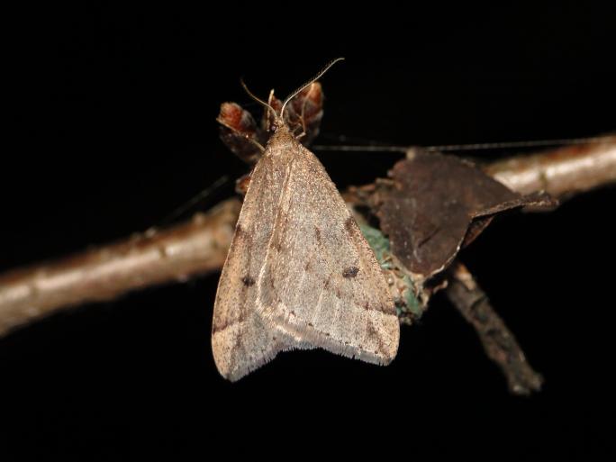 フユシャクのなかまを探すのは、夜に自然公園などに行くのがおすすめです(※フユシャクのなかまの中には昼に活動するものもいます)。なるべく暖かく、風の少ない日を選ぶのがポイントです。そして夜の森にガが飛んでいるのを見つけたら、今度は手すりや柵をじっくり見ていきましょう。翅のないフユシャクのメスは、そのような人工物の目立つところでオスを待っていることが多いです。