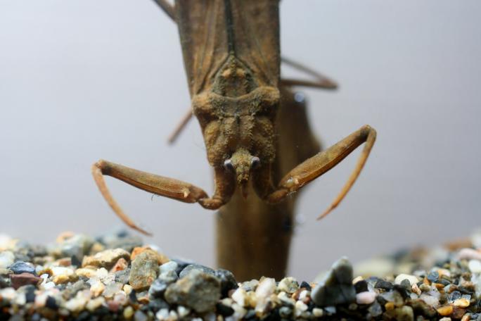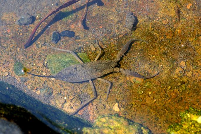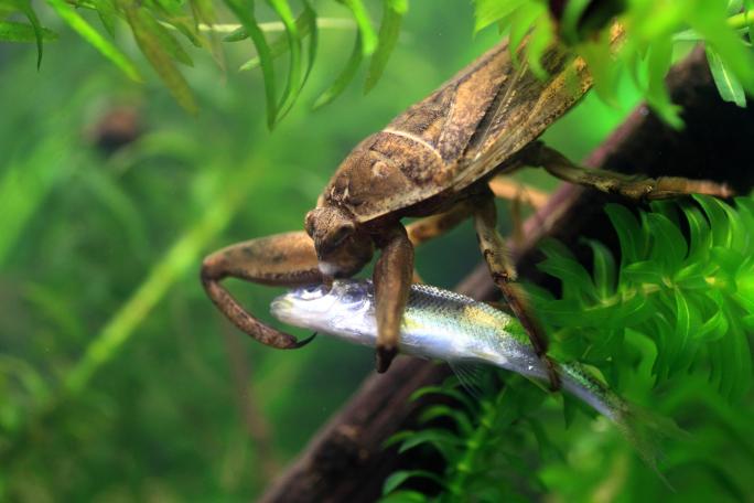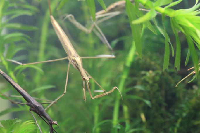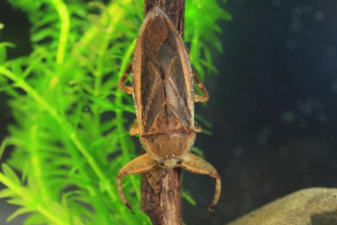 枯葉によく似ている昆虫です。泳ぎはあまり得意ではなく、ゆっくり泳ぎます。タガメと同じく、他の生き物を捕まえて、体液を吸汁します。