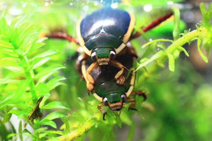 水中に住む、大型の甲虫です。死んだ魚の肉などを食べます。オスは前脚が吸盤のようになっており、交尾の際にメスの背中に張り付きます。近年開発とともに数を大きく減らしている昆虫です。