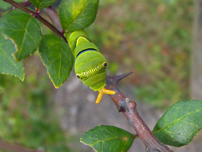 それでは、みなさんの身近で見られるイモムシを数種類紹介します。