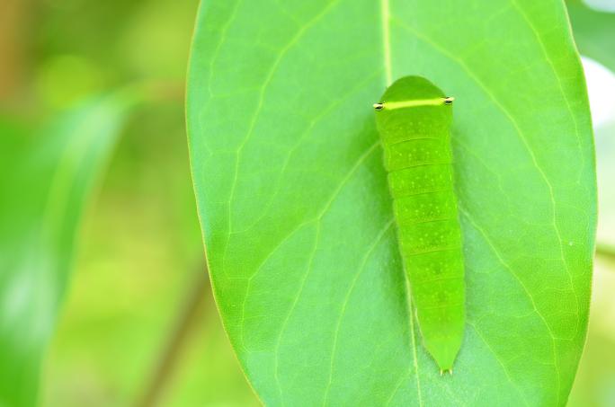 本記事では「チョウやガの幼虫」という定義でイモムシについてお話ししていきます。ちなみに「ケムシ」とは何が違うのか?という疑問を持たれる方もいるかもしれませんが、どちらもざっくりと線引きをするだけの言葉であり、「チョウやガの幼虫のうち、毛やトゲが生えているものをケムシと呼ぶ人もいる」くらいの認識で問題ありません。