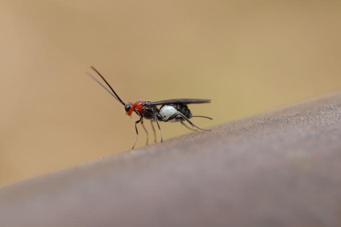 どれだけ大切にイモムシの飼育をしていても、うまく成虫になれないイモムシたちがいます。それは寄生虫に寄生されているイモムシです。イモムシに寄生する昆虫が数種類おり、その代表が寄生バチや寄生バエです。彼らはイモムシに直接卵を産みつけたり、卵のついた葉を食べさせることで、イモムシの体内に寄生します。