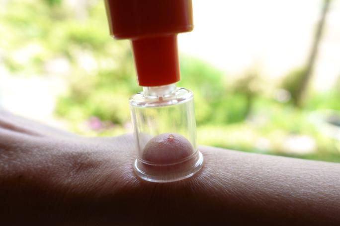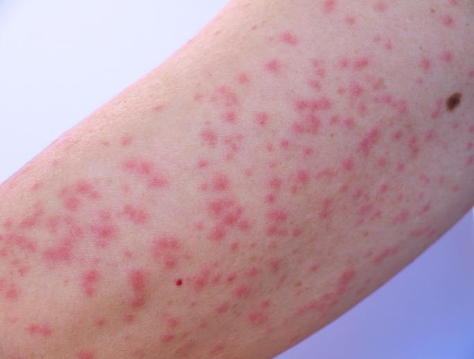 チャドクガによる皮膚炎は通称「毛虫皮膚炎」と呼ばれ、赤い湿疹が多く出て強い痒みが現れます。チャドクガの毒針毛に刺された場合は、粘着テープで毛をとったり、流水で洗い流すという対処が有効です。毒毛を取り除いたら皮膚科で診てもらいましょう。