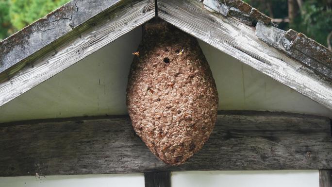 スズメバチのなかまは日本に数種生息していますが、その中でも人間への被害が特に多いのはキイロスズメバチです。キイロスズメバチは人家周辺を利用して巣を作ることが多く、ベランダや屋根などにバスケットボールほどの大きさの巣を作ってしまうこともあります。