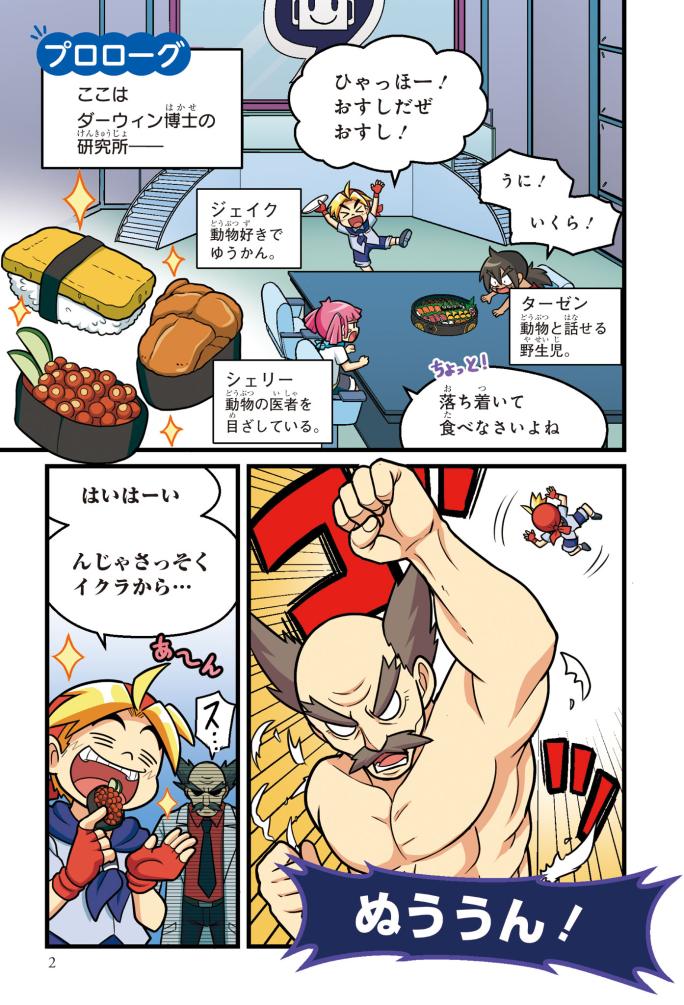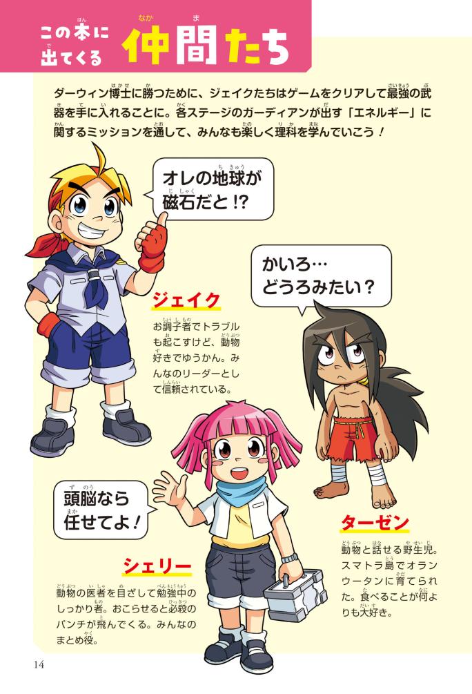 最強のダーウィン博士になかなか敵わないジェイクたち。そこに理科好きのできーる君がエネルギーについて学べる最新ゲーム「物理めっちゃマスター」を持ってきた! クリアすると“最強の武器”がゲットできるらしい。ダーウィン博士に勝つため、ジェイクたちはゲームの5つのステージにいどむことに! できーる君やジェイクたちといっしょに音や光、電気、磁力など、身の回りのさまざまな力について学んでいこう!!