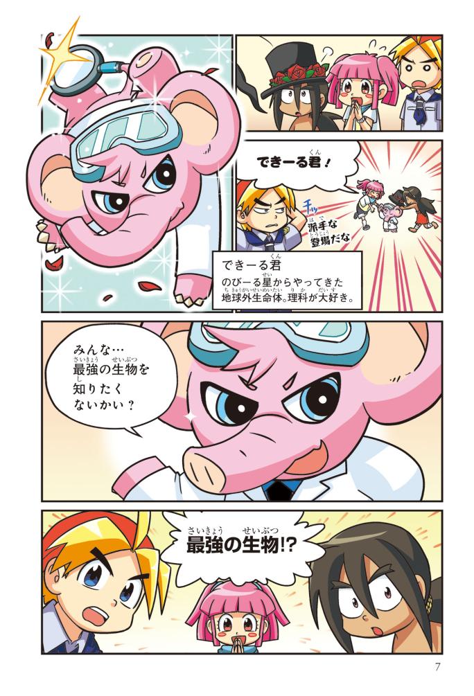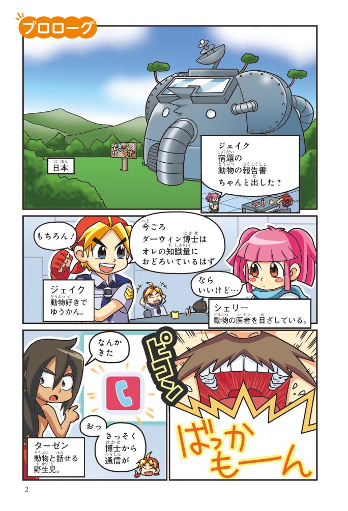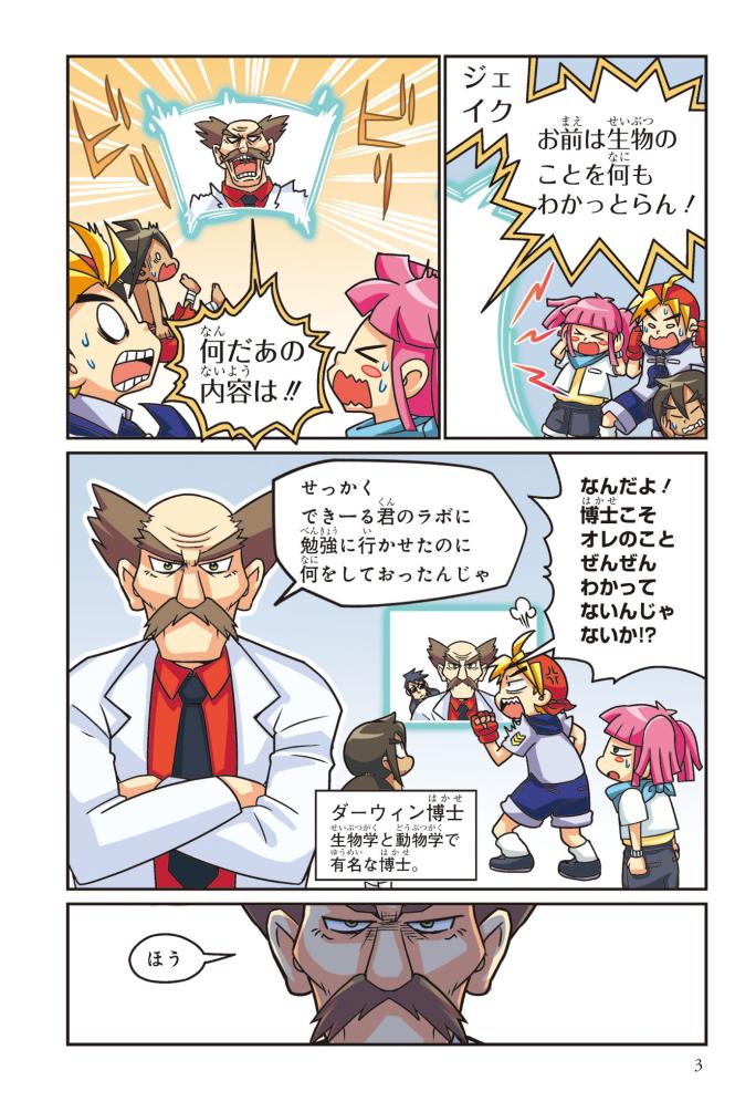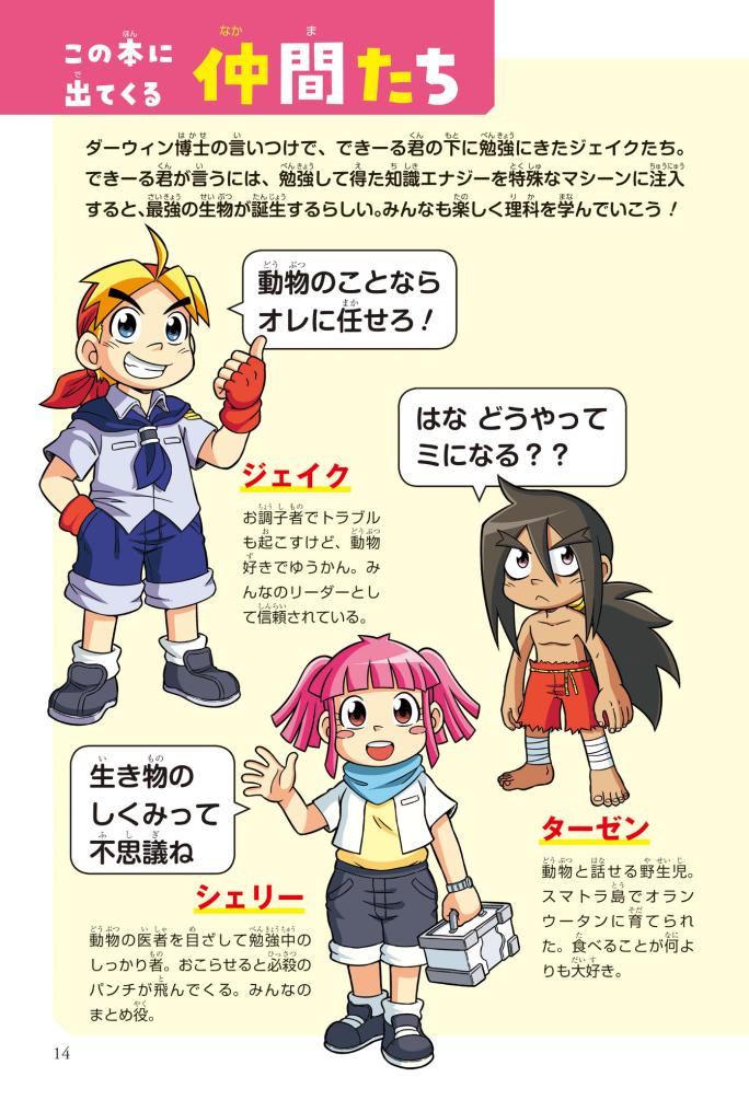 ダーウィン博士からの指令で、生き物についてたくさん学ぶために、できーる君の下にやってきたジェイクたち。できーる君が言うには、勉強して集めた「知識エナジー」を特別なマシーンに入れると、なんと“最強の生物”が誕生するんだって! 植物や動物、ヒトの体、地球と生き物の秘密を知ることでエナジーがたまるよ。ジェイクたちといっしょに、楽しく学びながら“最強の生物”をつくり出そう!
