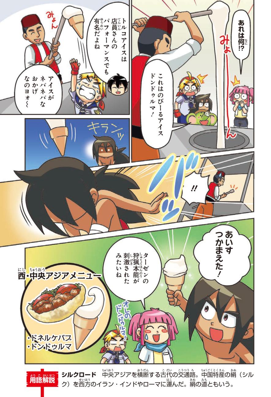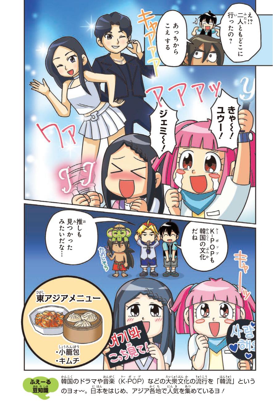 社会にくわしい地球外生命体のふえーる君とジェイクたちは「地球レストラン」を開くため、世界一周旅行に出発! ジェイクたちといっしょに、氷におおわれた国や砂漠が広がる国など、世界中をめぐって世界の地理博士になろう!