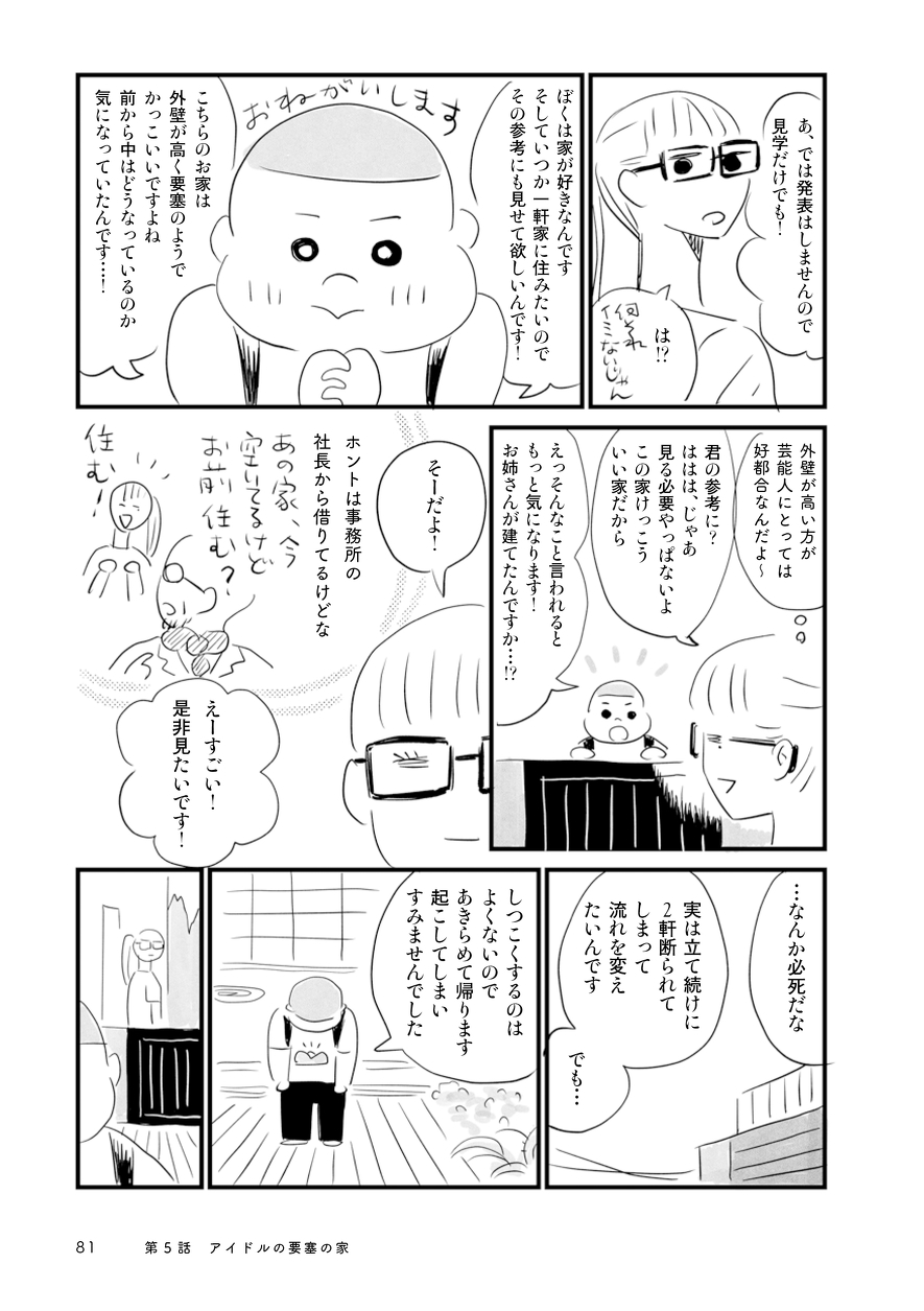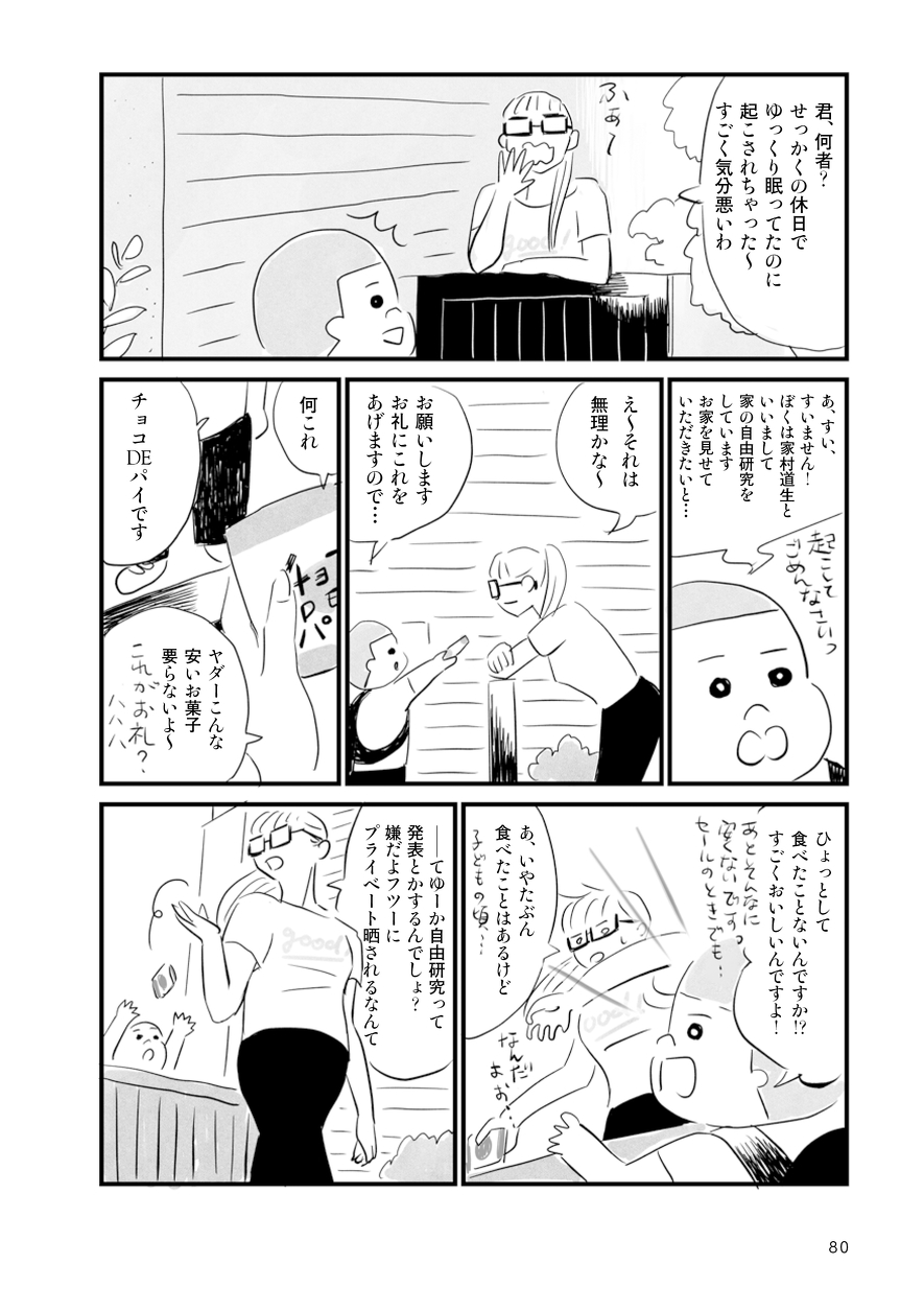 中はどうなっているんだろう? 住んでいる人はどんな人だろう? 家村道生は興味の赴くままに、気になる家の扉をたたきます。最初は渋々だった家主たちも、道生のまっすぐな思いに心を許し、家の中を案内していきます。学校で周囲になじめないという道生だけでなく、家主たちにも様々な事情があるようで——。