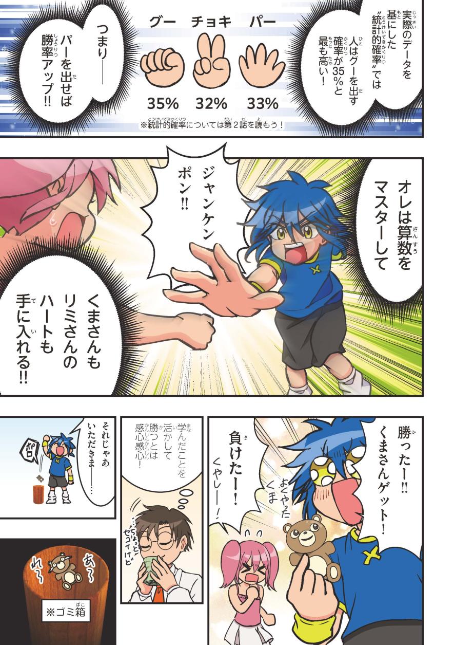 じゃんけんの勝ち方も、ラーメンの伸びるスピードも、さらには「紙を42回折れば月に届く!?」なんて夢のような話も、ぜんぶ算数で解けるんです。本連載では、笑いあり驚きありのストーリーを通して、子どもたちが自然に「算数って面白い!」と思える世界を紹介していきます。計算のスピードアップからグラフの見抜き方、統計や確率の使いこなしまで、楽しく読んでいるうちに算数の力がしっかり身につくはず!