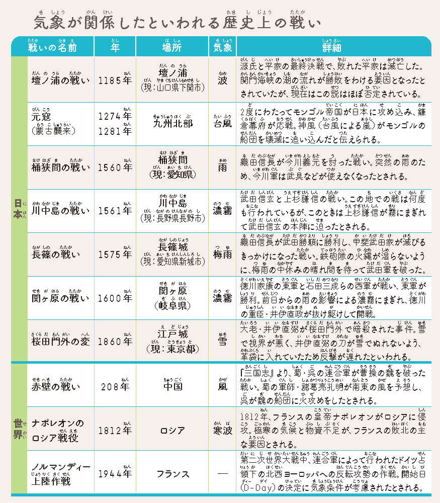 天気で予定がうまくいかないことがありますが、天気が勝敗を左右したと考えられている歴史上の戦いもあります。