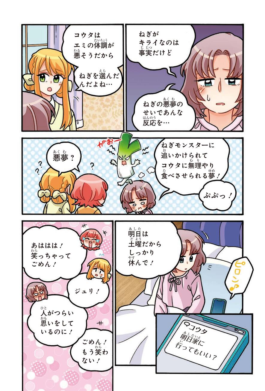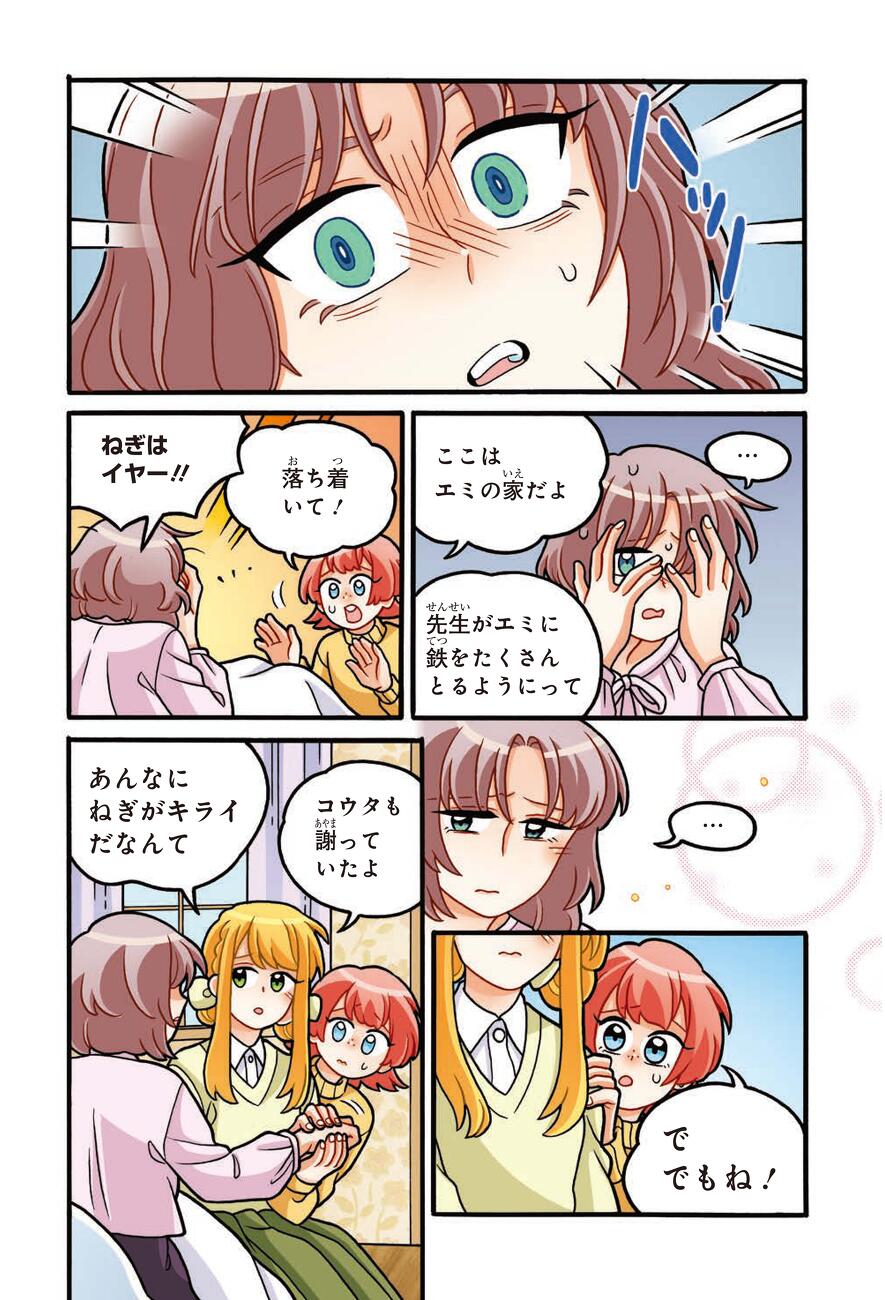 勉強が得意なおさななじみ・エミが、貧血で倒れちゃった!? 貧血には「ねぎ」が効果的だから、コウタがねぎ料理を作ってくれたけど…エミはコウタのやさしさを受け取れなくて…?