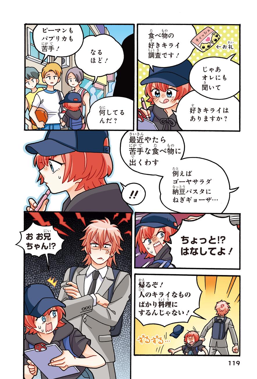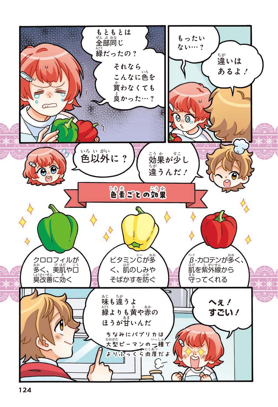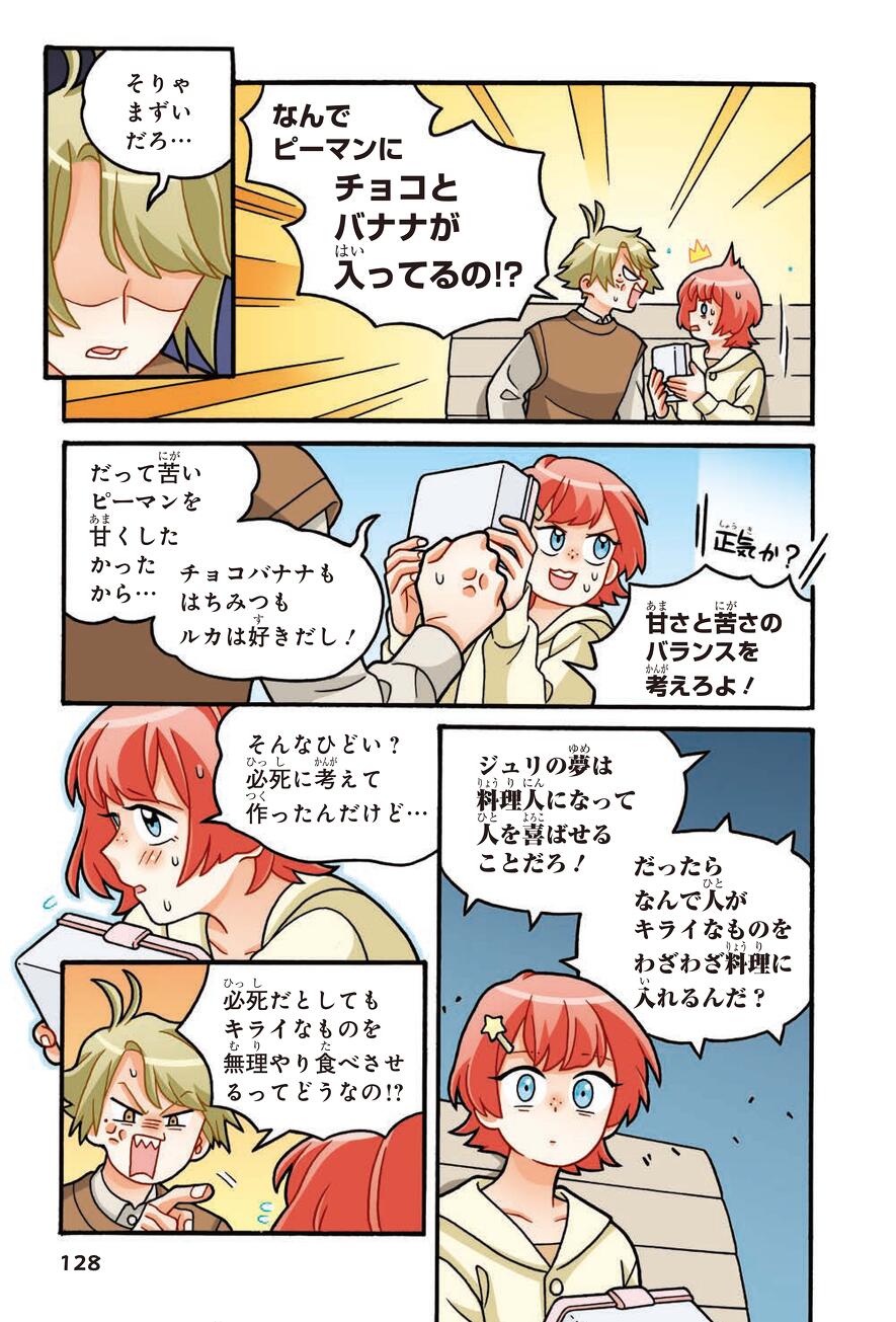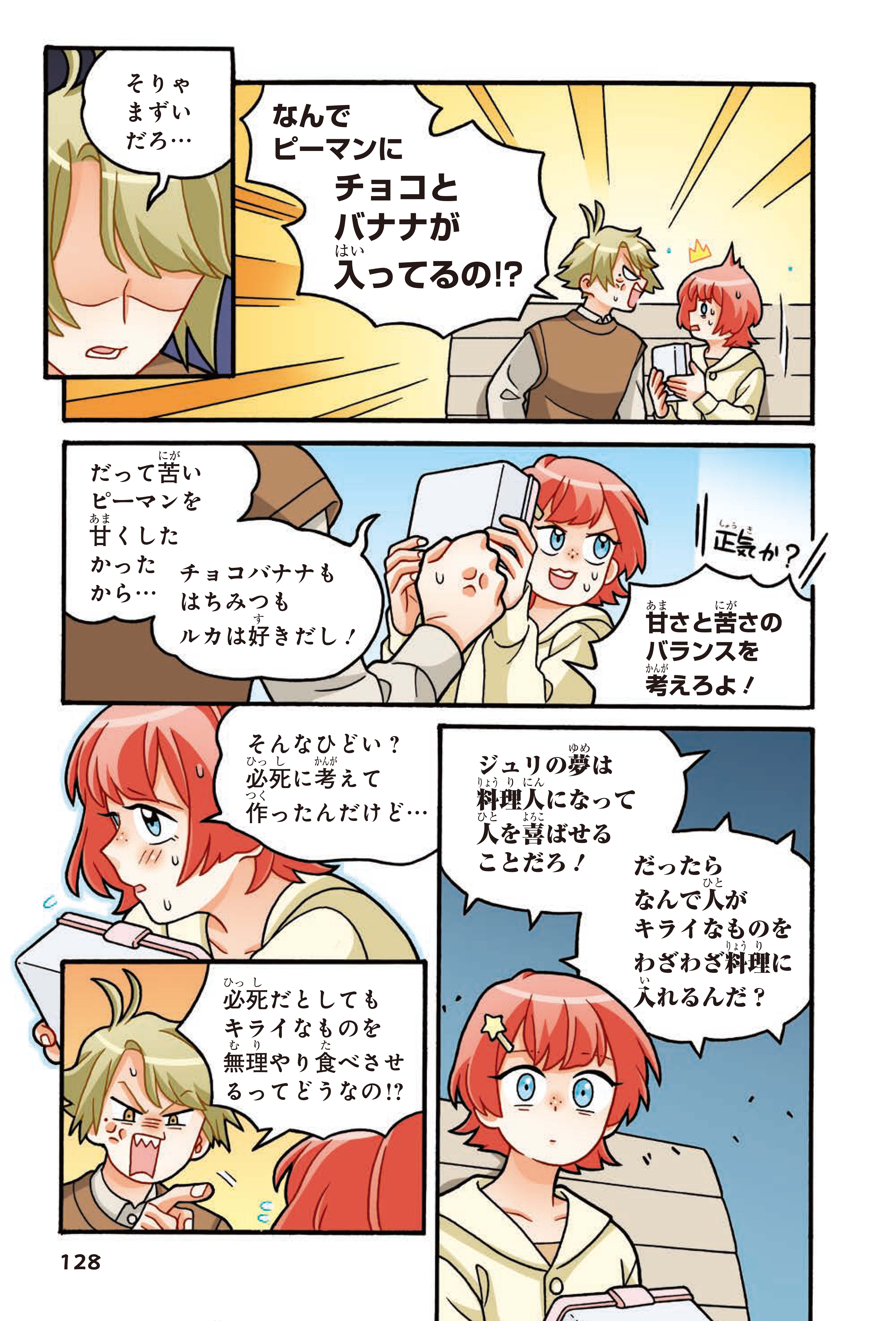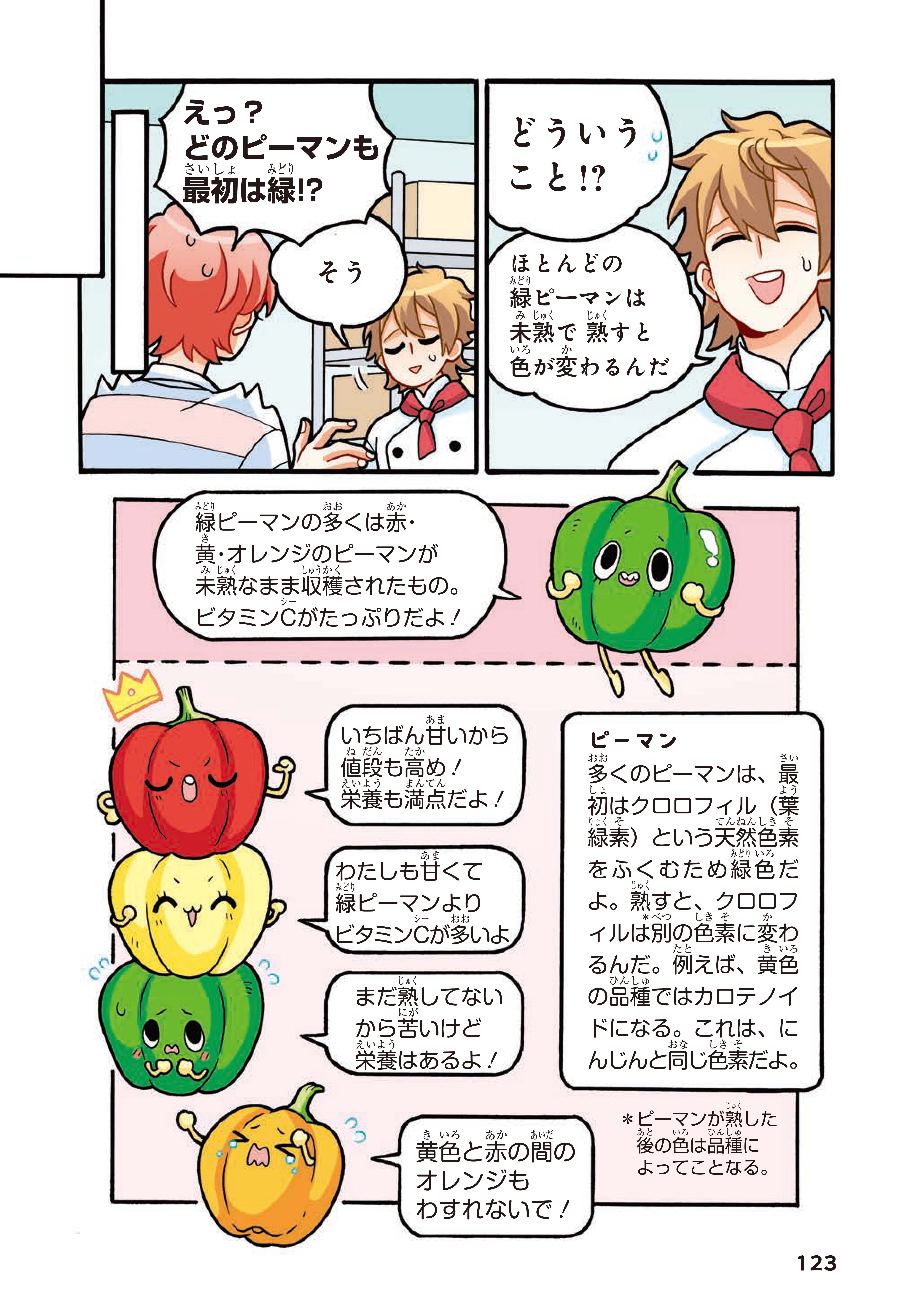 元気で前向きな女の子・ジュリは、「みんながキライなものでも、料理と栄養の力でおいしくしてみたい!」と思い、街で「いちばんキライな野菜」をアンケート調査することに。結果は「ピーマン」! 「ピーマンが苦いならあまくすればいいんじゃない!?」とひらめいて、ピーマンが苦手なイケメン男子・ルカのために料理を作ってみたら、予想外の反応が…?