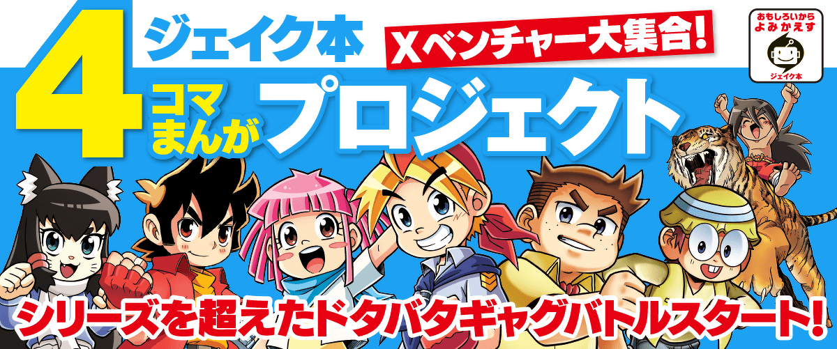 お知らせ(ひろば) 2023.07.19 ジェイク本4コマまんがプロジェクト 連載第4回 角川まんが学習シリーズ この記事をブックマークする 『どっちが強い!?』を中心としたジェイク本シリーズから、4コマまんがプロジェクトが始動! おなじみのジェイクやルイス、レインたちだけでなく、何と『ナゾトキ・ハンター』のアレックスもシリーズを超えて出会っちゃう!? 毎週1本掲載予定だよ♪ カメ 原作:KADOKAWA GEMPAK STARZ 作:伊藤キイチ この記事をブックマークする この記事をシェアする
