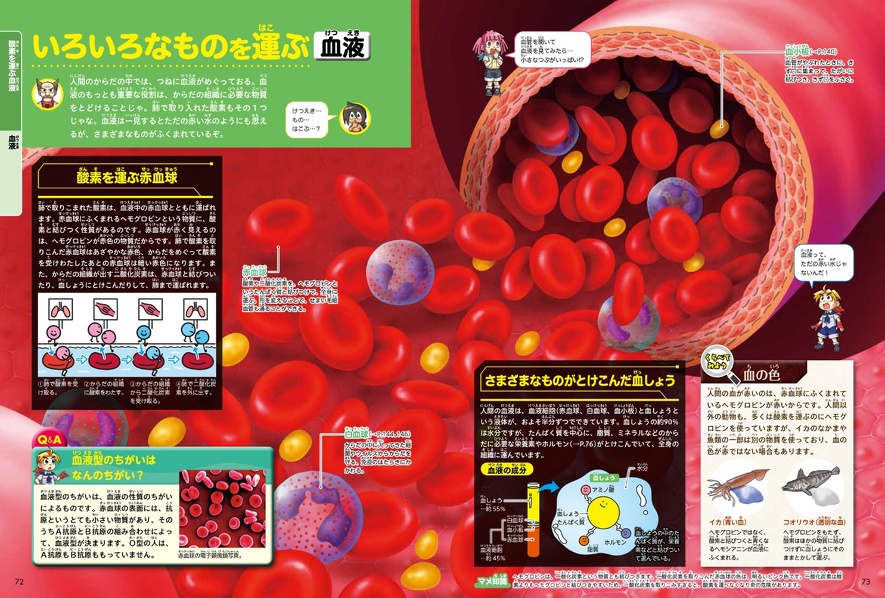 図鑑のなかでは、血液の役割や成分についてもたっぷり解説しています。