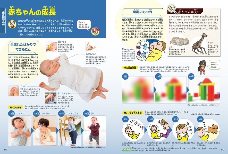 たくさんの写真やイラストを使ってわかりやすく解説! 人間の誕生と成長について楽しく学べます。