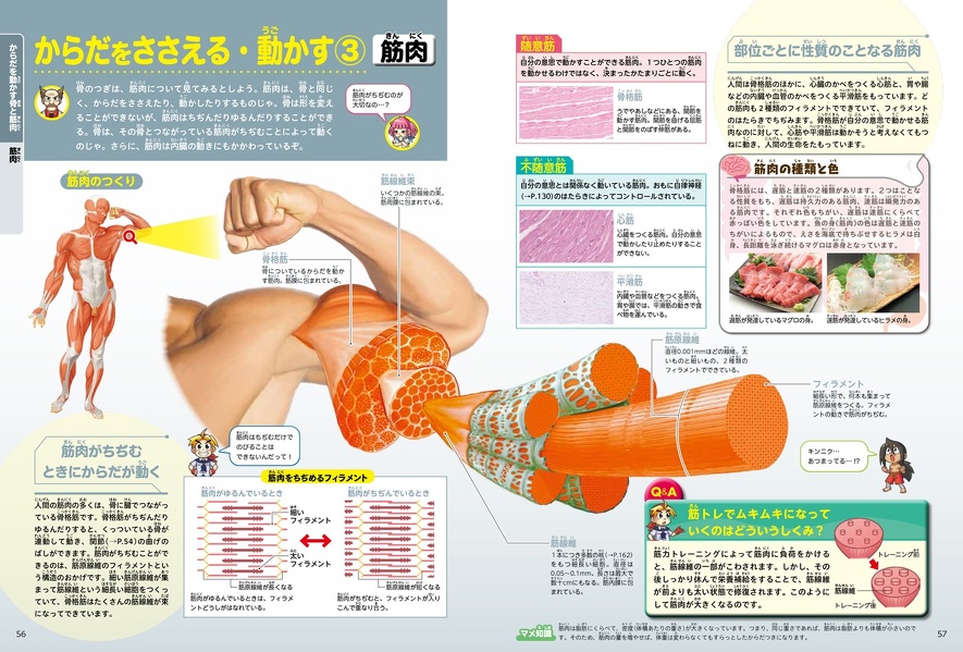 からだをささえたり動かしたりする筋肉について、図鑑のなかでもくわしく解説しています。