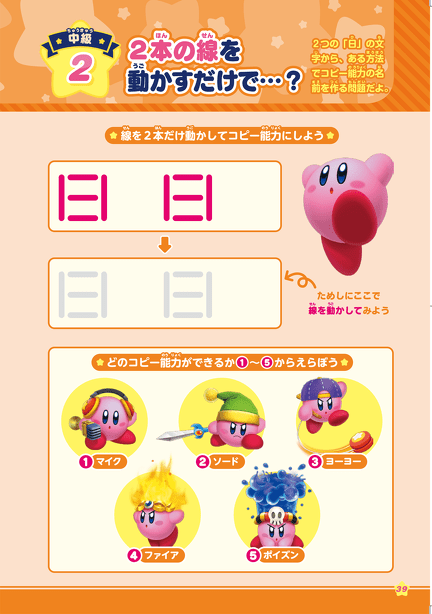 「星のカービィ」のキャラクターやコピー能力に関係したナゾトレ問題がいっぱいの本が登場! カービィたちといっしょにいろんなナゾに挑戦して思考力をきたえよう!