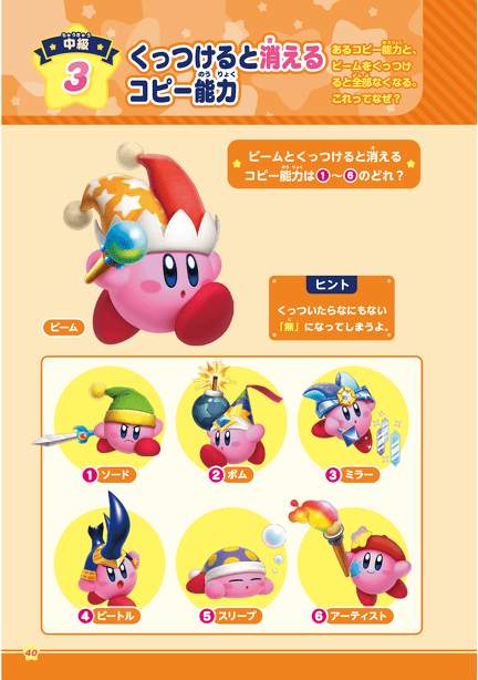 「星のカービィ」のキャラクターやコピー能力に関係した、おもしろナゾトレが大集合!!