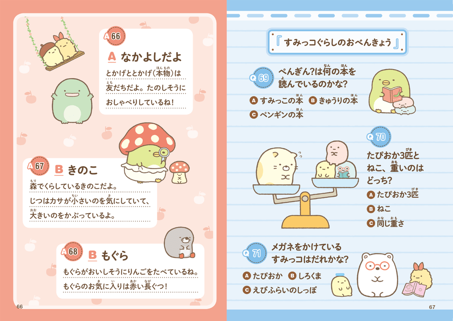 いろんなテーマのすみっコたちのイラストがいっぱいなので、見ているだけでも楽しくなっちゃう♪