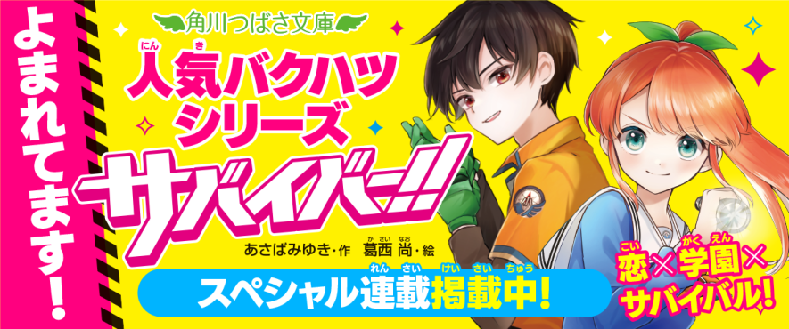この授業、恋も授業も命がけ! ぜったいおもしろい&最高にキュンとする「サバイバー!!」シリーズ。サバイバルな学校で、成績サイアクでも夢かなえます! 角川つばさ文庫の大人気シリーズ第1巻が、期間限定でまるごと読めちゃうよ!(公開期限:2026年1月12日(月・祝)23:59まで)