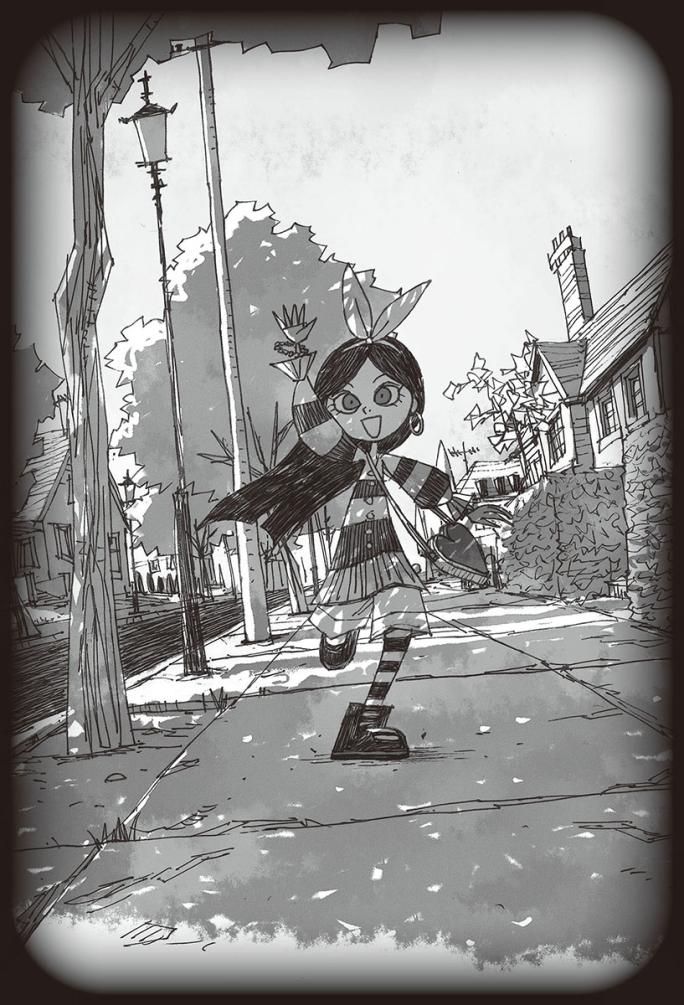 二台の車を見送ってから、カボちゃんのすがたが見えないかと、コーディは道の向こう側をながめた。けれど、ガイコツじいさんの家の前庭に、生き物の気配はない。