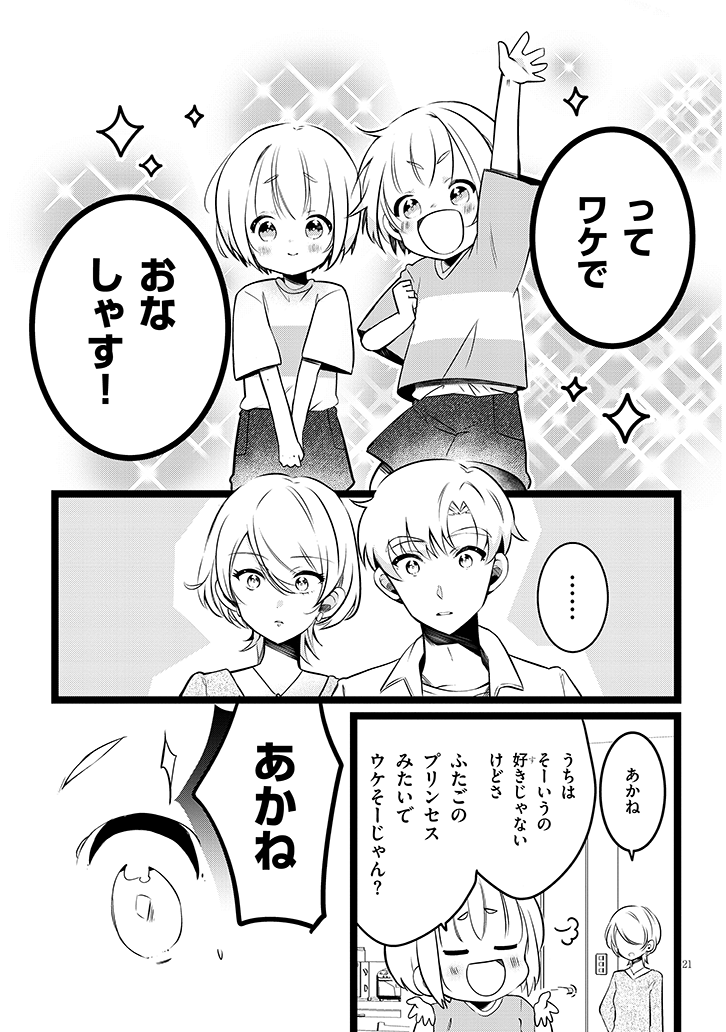 一覧へ 次の回 ものがたり 2025.02.28 『ふたごチャレンジ!』コミカライズ 第1回 角川つばさ文庫 この記事をブックマークする サッカーが大好きな元気っ子の、あかねと、お絵かきが好きで、ひっこみじあんな弟、かえでは、見た目がそっくりな、ふたご。「性別が逆だったら、よかったのにね――」なんて言われがち。10歳の誕生日が近づいてきて、なにやらお父さんとお母さんには、思うところがあるようで…。 次のページへ▶ 1 2 この記事をブックマークする 一覧へ 次の回 この記事をシェアする