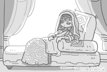 奥には玉座とベッドを一緒にしたようなものが置いてあり、その上にはぼくと同い年くらいの女の子が寝そべっていた。