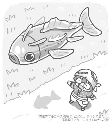 落ちてきた魚に、ぼくは駆けよった。一抱えもあるような大物だった。まばゆい金色の鱗(うろこ)は、一枚一枚が大人の親指の爪くらいもある。