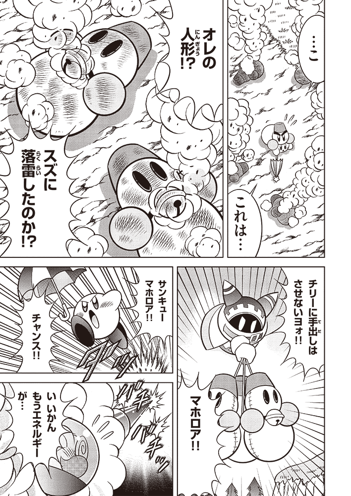 なんでもすいこむ食いしん坊・カービィは、プププランドでチリ―の家に同居中。自称王様のデデデ大王と今日も元気に食いしん坊対決! 単行本初登場「芸術の秋にスケッチ対決!!」と「毛糸のカービィ編1~4」も同時収録! お楽しみに!
