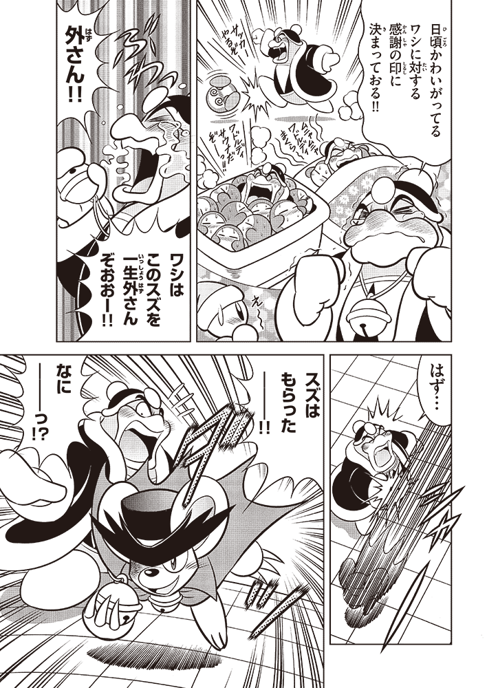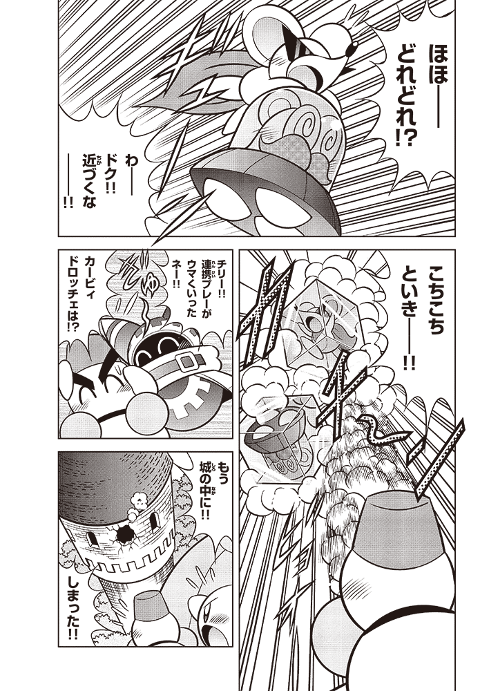 チリーの首をスズをめぐってドロッチェ団とカービィたちが大騒ぎ!!