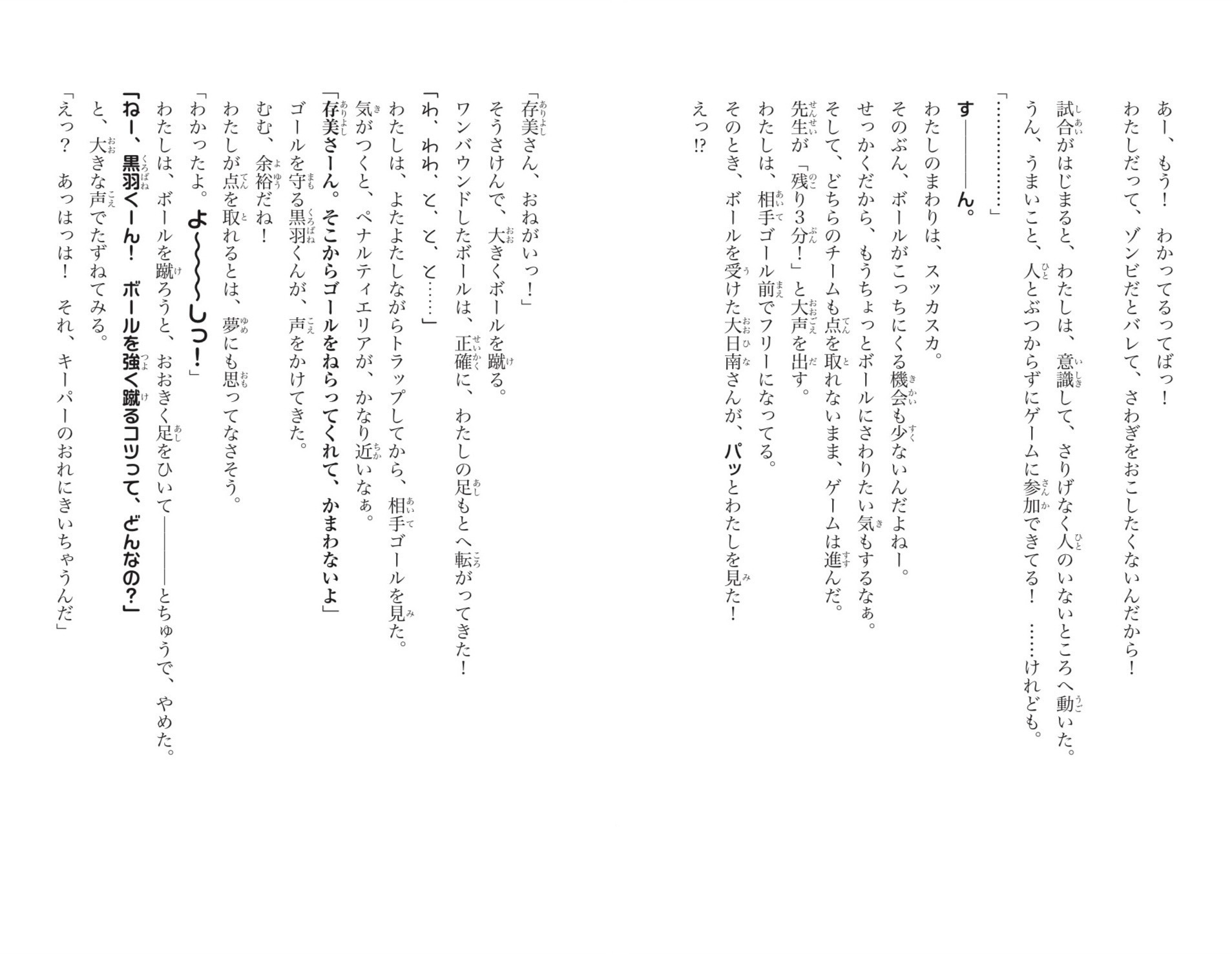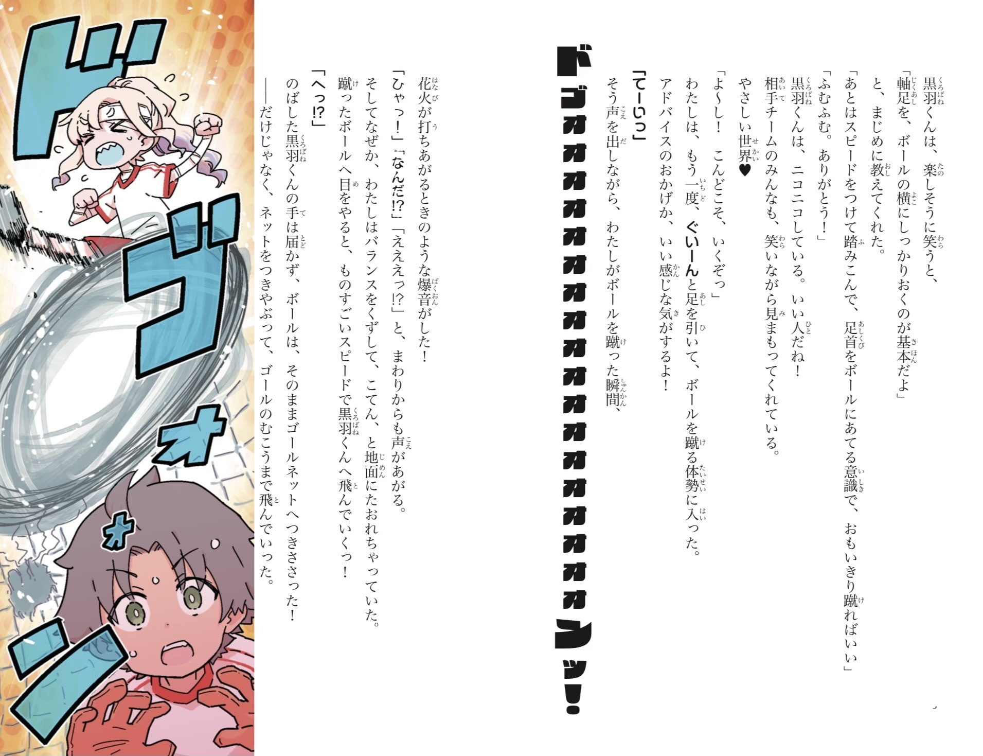 わたしは、もう一度、ぐいーんと足を引いて、ボールを蹴る体勢に入った。