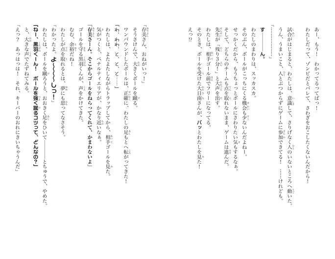 「くいな、相手と体をぶつけないように、注意しなよ。とにかく、人のいないところへ動くんだ。ボールを持っても、なるべくはやめに、だれかへパスするんだよ」