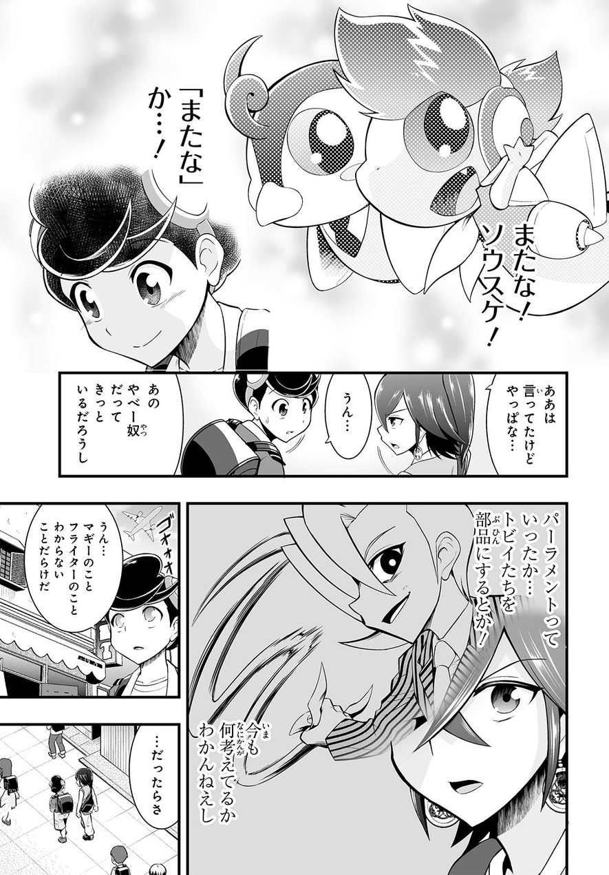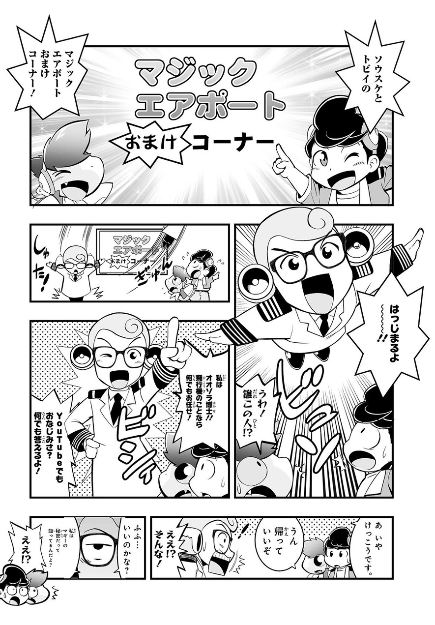 前の回 一覧へ 次の回 ものがたり 2021.10.22 マジックエアポート 第3話「駆っ飛べトビイ! 忘れ物で危機一髪」 この記事をブックマークする YouTube「マジックエアポートチャンネル」公開中! 「マジックエアポート」に登場するキャラクターが「なぜ飛行機は飛ぶのか?」などの航空科学について、客室乗務員やグランドスタッフといった実際に空港などで働くJALグループ社員とともに学ぶことができる「なぜなに!? 飛行機のヒミツ」を公開中! その他、さまざまなテーマを楽しみながら学ぶことができる動画コンテンツを毎月お届けします!(基本毎月1回公開予定)。 ぜひこの機会にチャンネル登録してみてくださいね☆ 「マジックエアポートチャンネル」は ▼以下のアイコンから♪▼ この記事をブックマークする 前の回 一覧へ 次の回 この記事をシェアする
