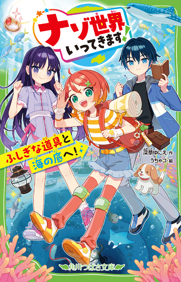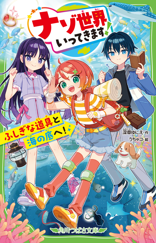 第13回角川つばさ文庫小説賞受賞作『ナゾ世界いってきます!』が発売前に69ページもためし読みができちゃう! 小5のリコのおじいちゃんは、冒険に出たまま帰ってこない。リコに残されたのは、ガラクタみたいな、だけどふしぎな力を持つ道具たちが残された。リコ、内斗、親友の涼夏の3人は、ヒラメキの力で、道具を使いこなし、海の底へ! 伝説の海底都市を発見し、さらには命がけのバトルや大脱出⁉ おもしろさ保証(ほしょう)つきの大冒険ストーリー!(全6回予定)