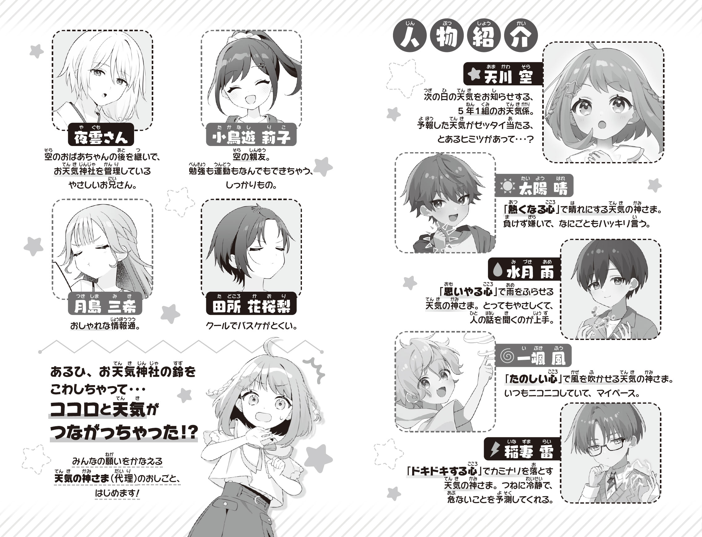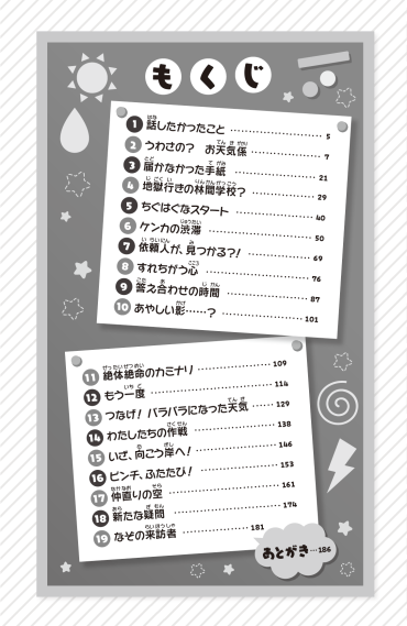 人気大ばくはつ!つばさ文庫の新シリーズ2巻めが1月7日(水)に発売予定! ひとあし先にためし読みしちゃおう☆ 超~優柔不断で自分になかなか自信がもてない5年生の女の子、天川空がある日突然、天気をあやつるチカラを手にいれた!? 天気の神さまの代わりに、お天気神社にきた天気の願いを叶えるしごとをはじめたけど――肝心の願い事を聞き逃しちゃった! 明日からの林間学校、このままだと神さま失格で地獄行き!?(公開期限:2025年3月31日(火)23:59まで)