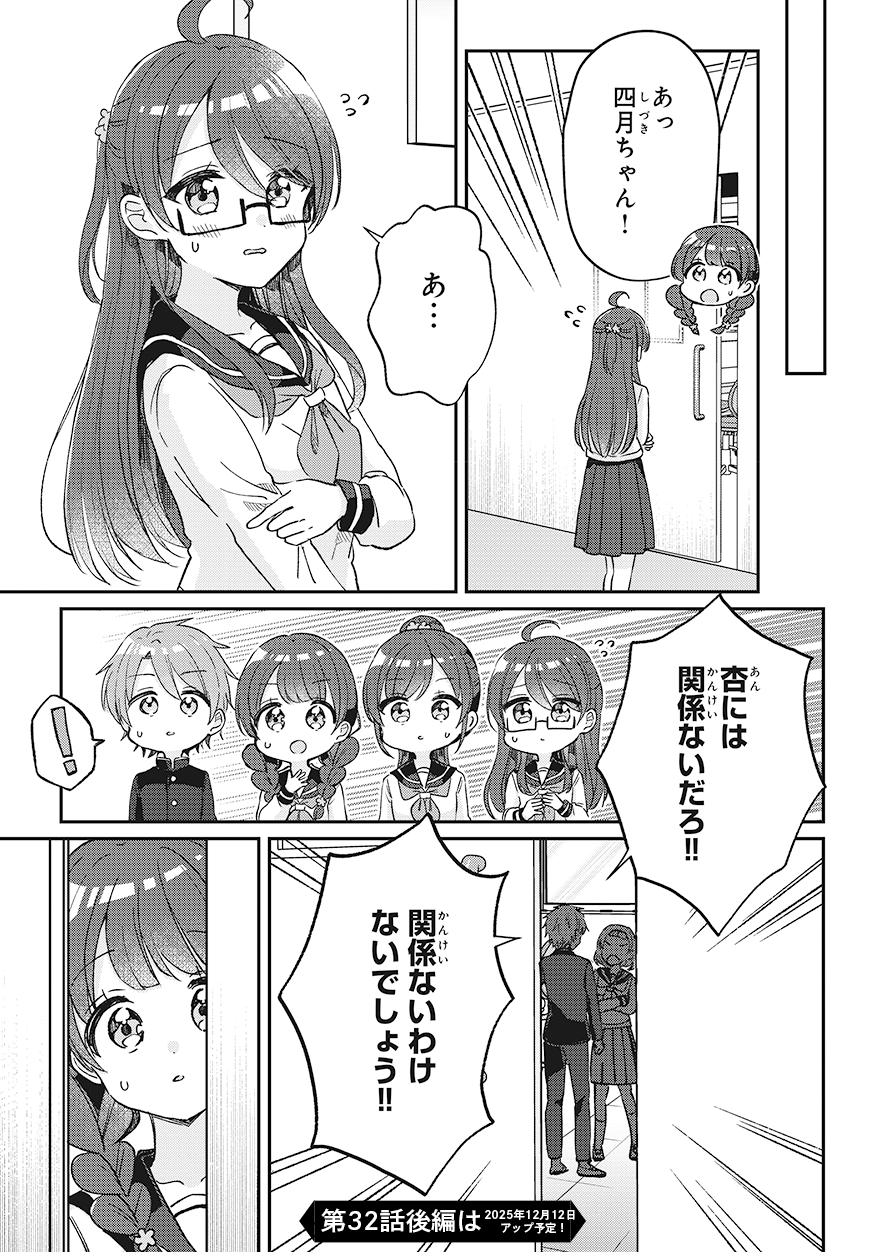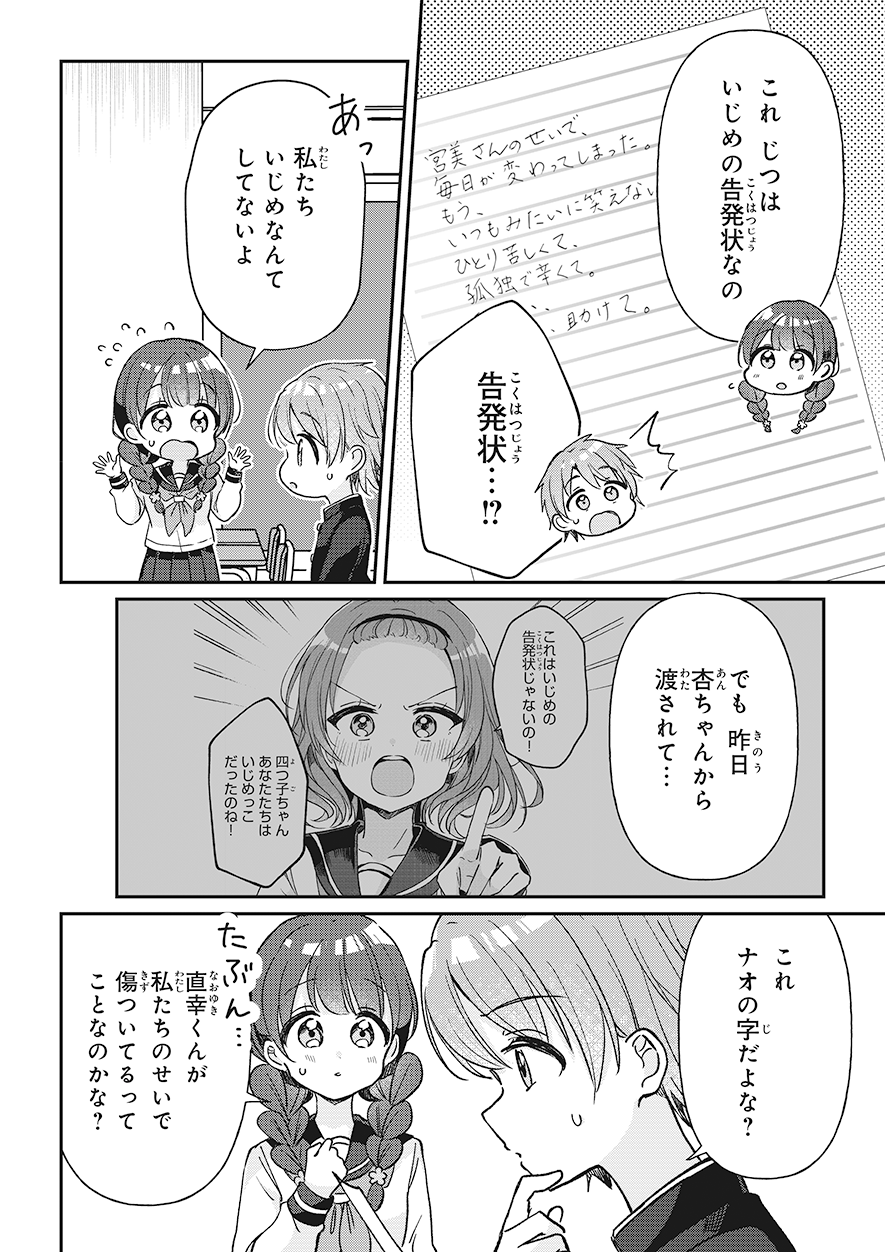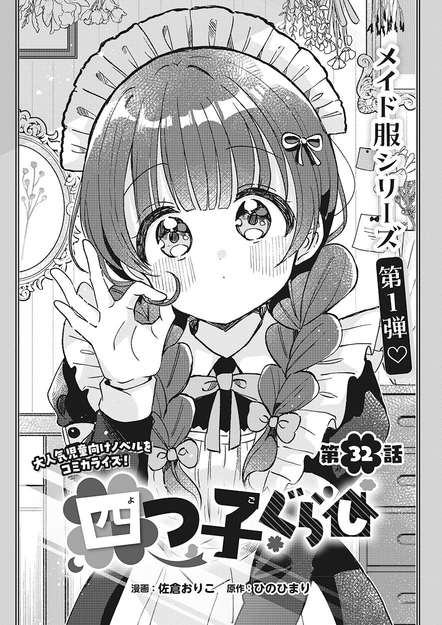 前の回 一覧へ ものがたり 2025.11.14 四つ子ぐらし 第32話-前編 角川つばさ文庫 この記事をブックマークする ※マンガ「四つ子ぐらし」32話<前編><後編>は、2026年1月15日に公開を終了します。 ★マンガ「四つ子ぐらし」第5巻、大人気発売中! 四つ子ぐらし5 四つ子ぐらし5 漫画: 佐倉 おりこ 原作: ひの ひまり 【定価】 792円(本体720円+税) 【発売日】 2025年7月10日 【サイズ】 B6判 【ISBN】 9784041164860 ためし読み 紙の本を買う 電子書籍を買う 四つ子ぐらし4 四つ子ぐらし4 漫画: 佐倉 おりこ 原作: ひの ひまり 【定価】 748円(本体680円+税) 【発売日】 2024年7月10日 【サイズ】 B6判 【ISBN】 9784041151983 ためし読み 紙の本を買う 電子書籍を買う 四つ子ぐらし3 四つ子ぐらし3 漫画: 佐倉 おりこ 原作: ひの ひまり 【定価】 792円(本体720円+税) 【発売日】 2023年7月10日 【サイズ】 B6判 【ISBN】 9784041137895 ためし読み 紙の本を買う 電子書籍を買う 四つ子ぐらし2 四つ子ぐらし2 漫画: 佐倉 おりこ 原作: ひの ひまり 【定価】 792円(本体720円+税) 【発売日】 2022年7月8日 【サイズ】 B6判 【ISBN】 9784041126165 ためし読み 紙の本を買う 電子書籍を買う 四つ子ぐらし1 四つ子ぐらし1 漫画: 佐倉 おりこ 原作: ひの ひまり 【定価】 748円(本体680円+税) 【発売日】 2021年9月10日 【サイズ】 B6判 【ISBN】 9784041117477 ためし読み 紙の本を買う 電子書籍を買う つばさ文庫版 絶賛発売中! 四つ子ぐらし(1) ひみつの姉妹生活、スタート! 四つ子ぐらし(1) ひみつの姉妹生活、スタート! 作: ひの ひまり 絵: 佐倉 おりこ 【定価】 814円(本体740円+税) 【発売日】 2018年10月15日 【サイズ】 新書判 【ISBN】 9784046318404 ためし読み 紙の本を買う 電子書籍を買う こちらもおすすめ! あの人気シリーズが、大迫力のマンガで楽しめる! ボイスドラマも連載中♪ この記事をブックマークする 前の回 一覧へ この記事をシェアする
