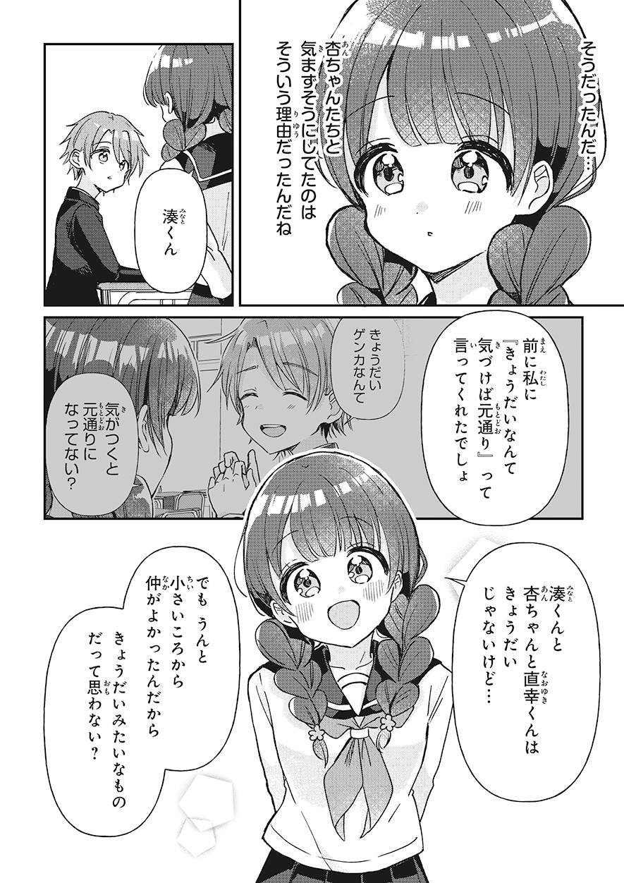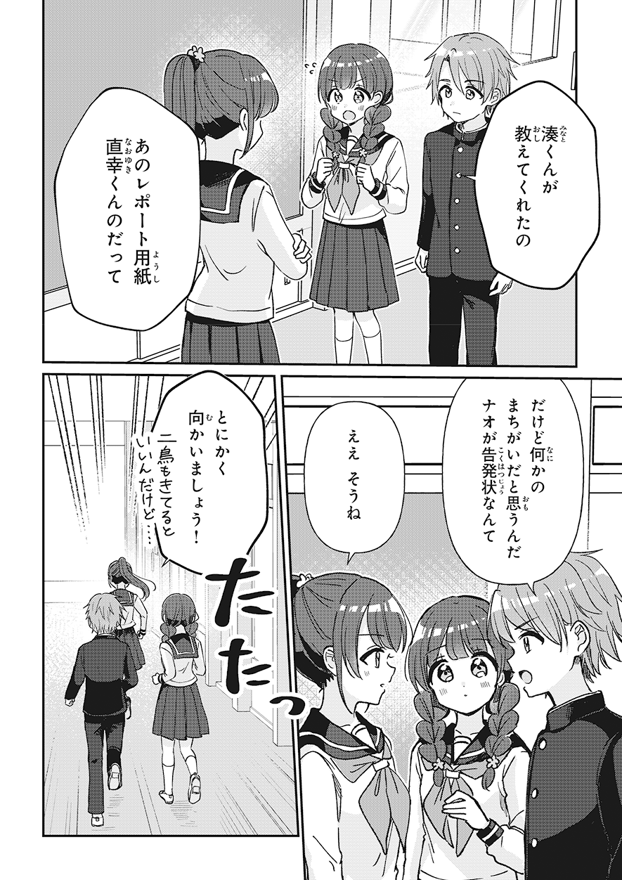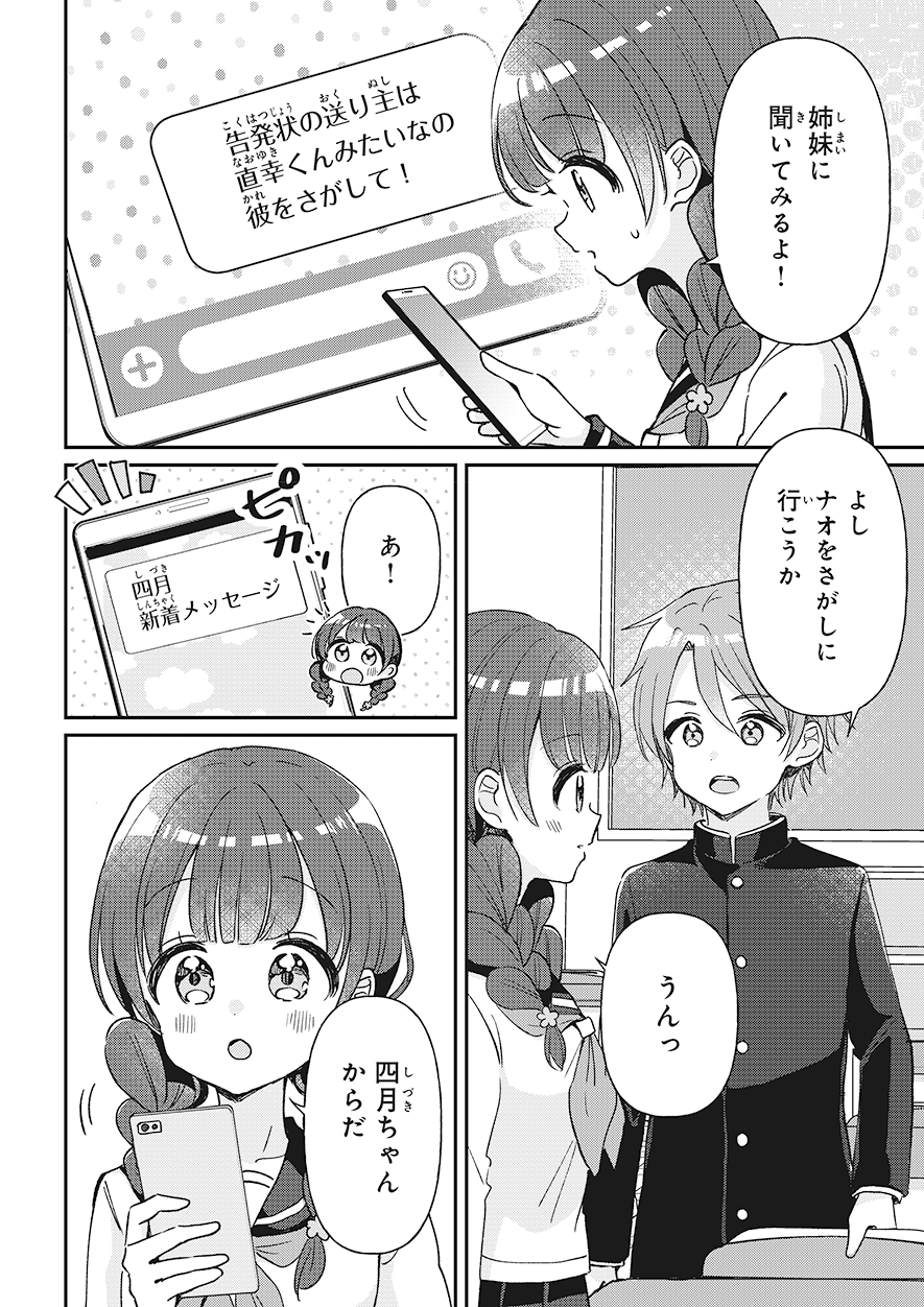 前の回 一覧へ ものがたり 2025.11.14 四つ子ぐらし 第32話-前編 角川つばさ文庫 この記事をブックマークする ※マンガ「四つ子ぐらし」32話<前編><後編>は、2026年1月15日に公開を終了します。 ★マンガ「四つ子ぐらし」第5巻、大人気発売中! 四つ子ぐらし5 四つ子ぐらし5 漫画: 佐倉 おりこ 原作: ひの ひまり 【定価】 792円(本体720円+税) 【発売日】 2025年7月10日 【サイズ】 B6判 【ISBN】 9784041164860 ためし読み 紙の本を買う 電子書籍を買う 四つ子ぐらし4 四つ子ぐらし4 漫画: 佐倉 おりこ 原作: ひの ひまり 【定価】 748円(本体680円+税) 【発売日】 2024年7月10日 【サイズ】 B6判 【ISBN】 9784041151983 ためし読み 紙の本を買う 電子書籍を買う 四つ子ぐらし3 四つ子ぐらし3 漫画: 佐倉 おりこ 原作: ひの ひまり 【定価】 792円(本体720円+税) 【発売日】 2023年7月10日 【サイズ】 B6判 【ISBN】 9784041137895 ためし読み 紙の本を買う 電子書籍を買う 四つ子ぐらし2 四つ子ぐらし2 漫画: 佐倉 おりこ 原作: ひの ひまり 【定価】 792円(本体720円+税) 【発売日】 2022年7月8日 【サイズ】 B6判 【ISBN】 9784041126165 ためし読み 紙の本を買う 電子書籍を買う 四つ子ぐらし1 四つ子ぐらし1 漫画: 佐倉 おりこ 原作: ひの ひまり 【定価】 748円(本体680円+税) 【発売日】 2021年9月10日 【サイズ】 B6判 【ISBN】 9784041117477 ためし読み 紙の本を買う 電子書籍を買う つばさ文庫版 絶賛発売中! 四つ子ぐらし(1) ひみつの姉妹生活、スタート! 四つ子ぐらし(1) ひみつの姉妹生活、スタート! 作: ひの ひまり 絵: 佐倉 おりこ 【定価】 814円(本体740円+税) 【発売日】 2018年10月15日 【サイズ】 新書判 【ISBN】 9784046318404 ためし読み 紙の本を買う 電子書籍を買う こちらもおすすめ! あの人気シリーズが、大迫力のマンガで楽しめる! ボイスドラマも連載中♪ この記事をブックマークする 前の回 一覧へ この記事をシェアする