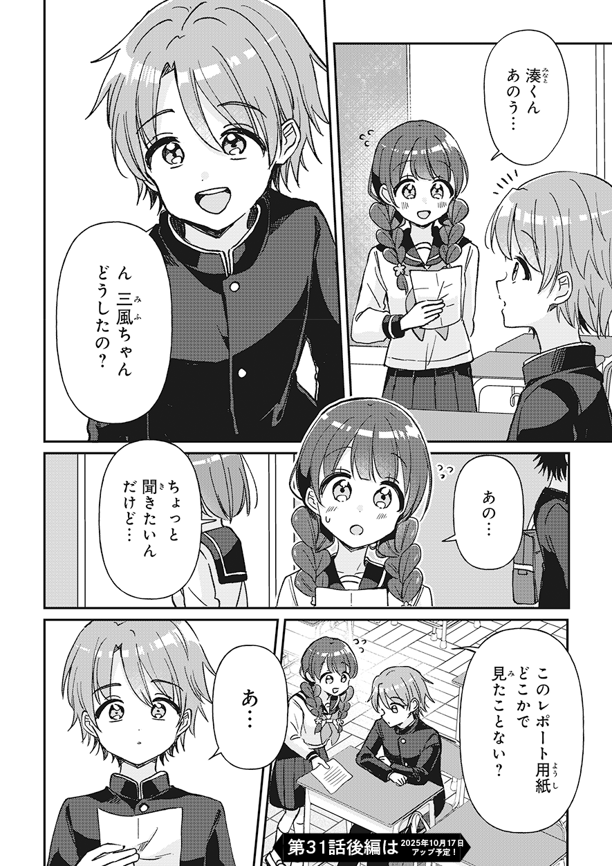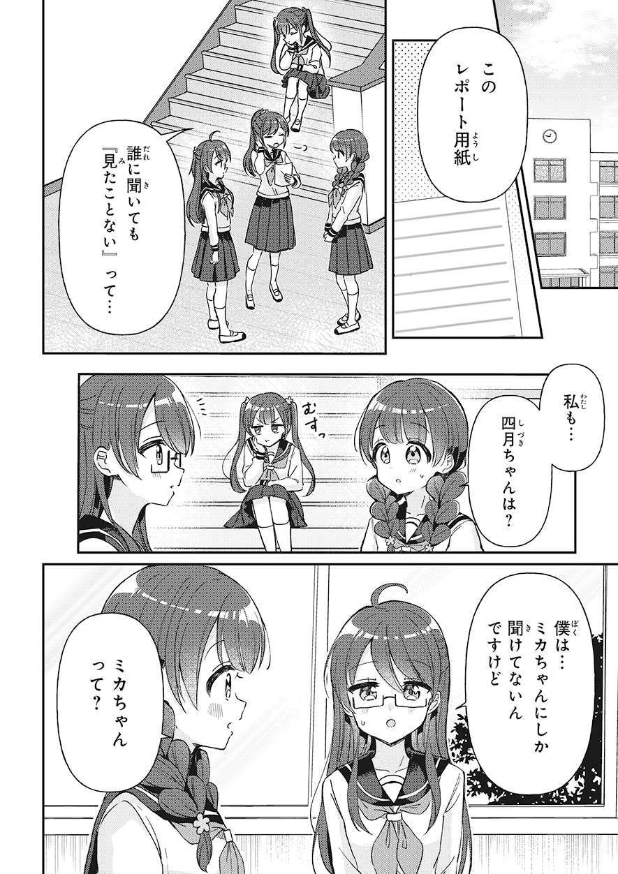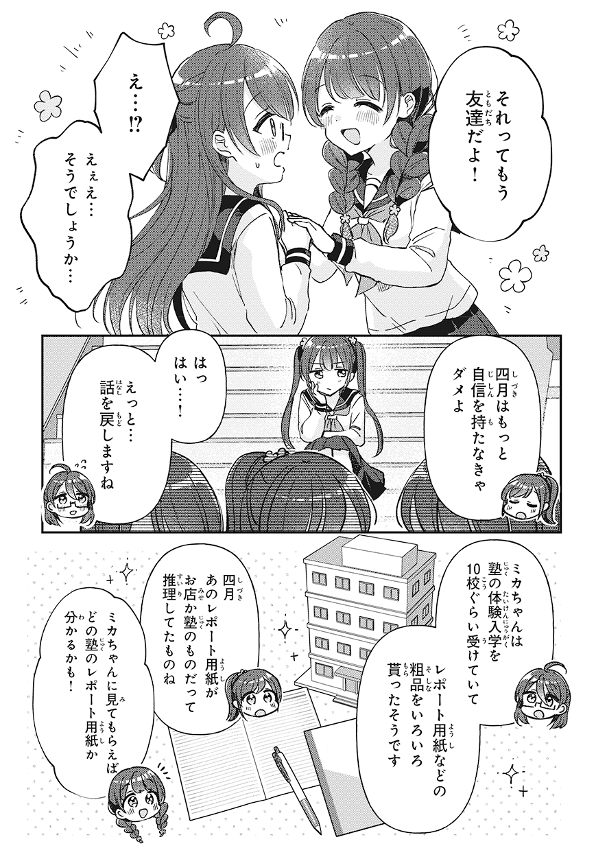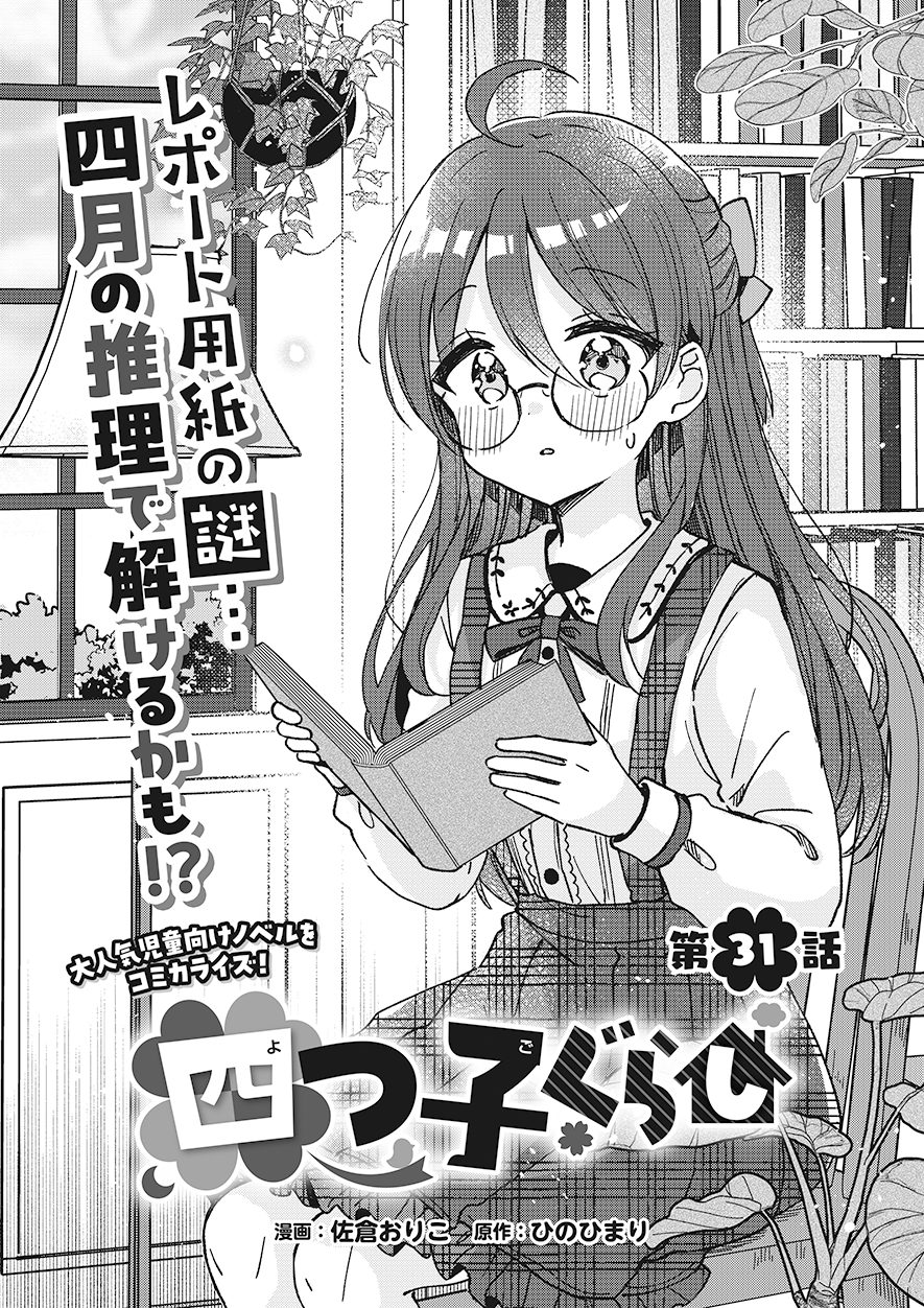 前の回 一覧へ 次の回 ものがたり 2025.09.12 四つ子ぐらし 第31話-前編 角川つばさ文庫 この記事をブックマークする ※マンガ「四つ子ぐらし」31話<前編><後編>は、2025年11月13日に公開を終了します。 ★マンガ「四つ子ぐらし」第5巻、大人気発売中! 四つ子ぐらし5 四つ子ぐらし5 漫画: 佐倉 おりこ 原作: ひの ひまり 【定価】 792円(本体720円+税) 【発売日】 2025年7月10日 【サイズ】 B6判 【ISBN】 9784041164860 ためし読み 紙の本を買う 電子書籍を買う 四つ子ぐらし4 四つ子ぐらし4 漫画: 佐倉 おりこ 原作: ひの ひまり 【定価】 748円(本体680円+税) 【発売日】 2024年7月10日 【サイズ】 B6判 【ISBN】 9784041151983 ためし読み 紙の本を買う 電子書籍を買う 四つ子ぐらし3 四つ子ぐらし3 漫画: 佐倉 おりこ 原作: ひの ひまり 【定価】 792円(本体720円+税) 【発売日】 2023年7月10日 【サイズ】 B6判 【ISBN】 9784041137895 ためし読み 紙の本を買う 電子書籍を買う 四つ子ぐらし2 四つ子ぐらし2 漫画: 佐倉 おりこ 原作: ひの ひまり 【定価】 792円(本体720円+税) 【発売日】 2022年7月8日 【サイズ】 B6判 【ISBN】 9784041126165 ためし読み 紙の本を買う 電子書籍を買う 四つ子ぐらし1 四つ子ぐらし1 漫画: 佐倉 おりこ 原作: ひの ひまり 【定価】 748円(本体680円+税) 【発売日】 2021年9月10日 【サイズ】 B6判 【ISBN】 9784041117477 ためし読み 紙の本を買う 電子書籍を買う つばさ文庫版 絶賛発売中! 四つ子ぐらし(1) ひみつの姉妹生活、スタート! 四つ子ぐらし(1) ひみつの姉妹生活、スタート! 作:ひの ひまり 絵:佐倉 おりこ 【定価】 704円(本体640円+税) 【発売日】 2018年10月15日 【サイズ】 新書判 【ISBN】 9784046318404 ためし読み 紙の本を買う 電子書籍を買う あの人気シリーズが、大迫力のマンガで楽しめる! ボイスドラマも連載中♪ この記事をブックマークする 前の回 一覧へ 次の回 この記事をシェアする