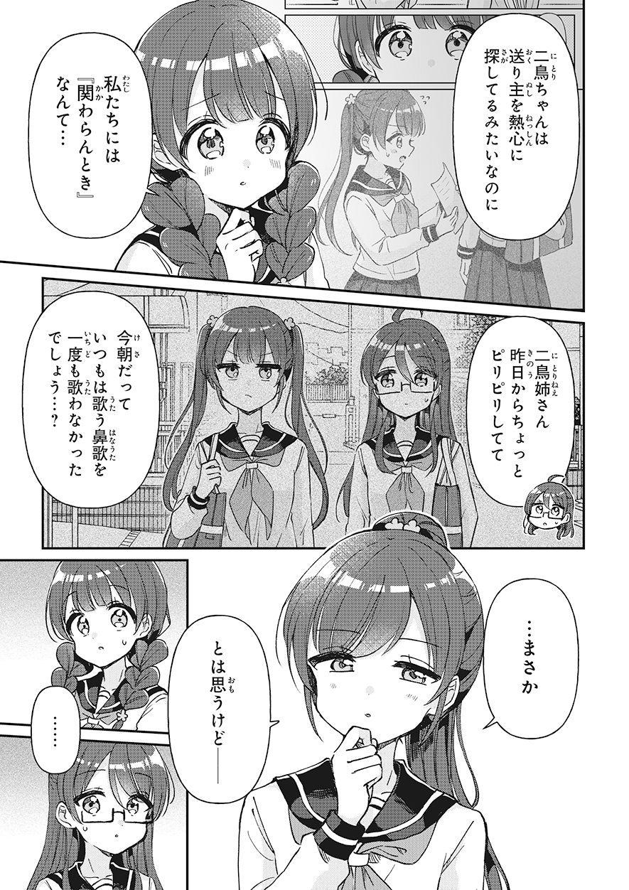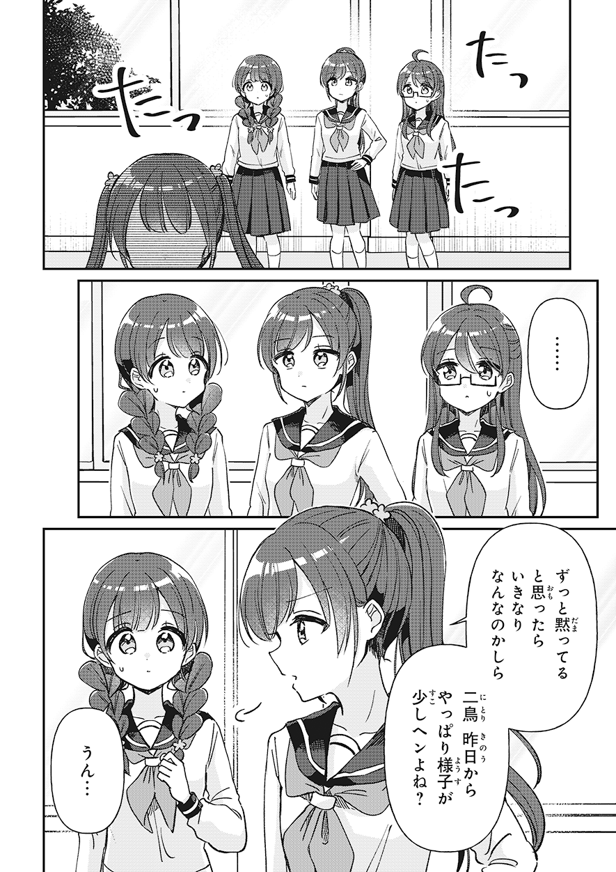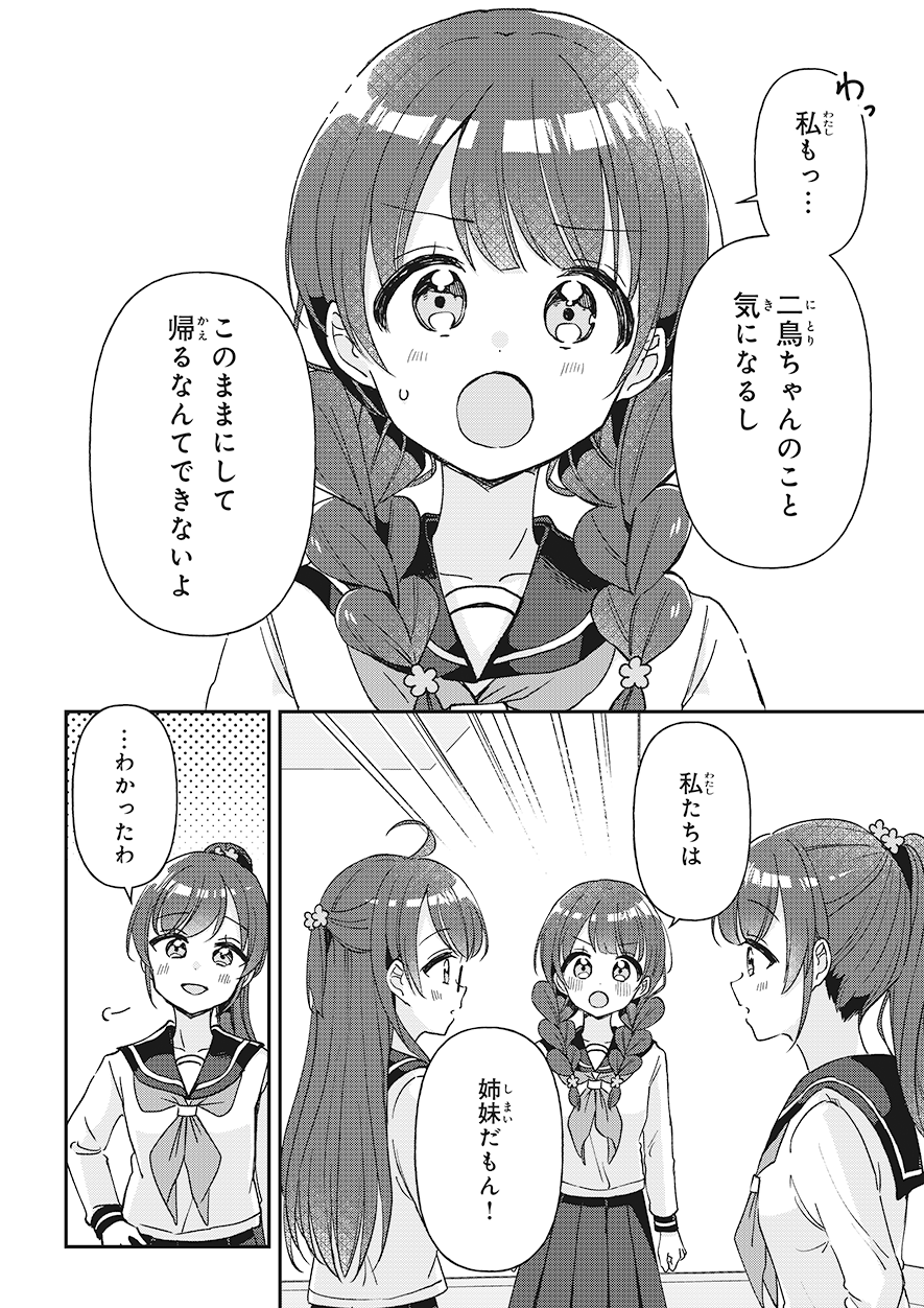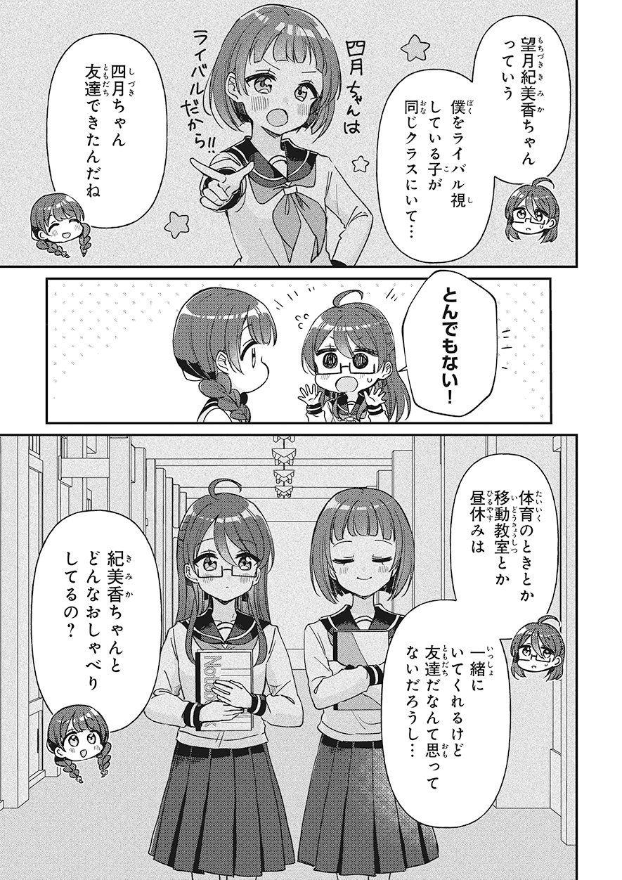 前の回 一覧へ 次の回 ものがたり 2025.09.12 四つ子ぐらし 第31話-前編 角川つばさ文庫 この記事をブックマークする ※マンガ「四つ子ぐらし」31話<前編><後編>は、2025年11月13日に公開を終了します。 ★マンガ「四つ子ぐらし」第5巻、大人気発売中! 四つ子ぐらし5 四つ子ぐらし5 漫画: 佐倉 おりこ 原作: ひの ひまり 【定価】 792円(本体720円+税) 【発売日】 2025年7月10日 【サイズ】 B6判 【ISBN】 9784041164860 ためし読み 紙の本を買う 電子書籍を買う 四つ子ぐらし4 四つ子ぐらし4 漫画: 佐倉 おりこ 原作: ひの ひまり 【定価】 748円(本体680円+税) 【発売日】 2024年7月10日 【サイズ】 B6判 【ISBN】 9784041151983 ためし読み 紙の本を買う 電子書籍を買う 四つ子ぐらし3 四つ子ぐらし3 漫画: 佐倉 おりこ 原作: ひの ひまり 【定価】 792円(本体720円+税) 【発売日】 2023年7月10日 【サイズ】 B6判 【ISBN】 9784041137895 ためし読み 紙の本を買う 電子書籍を買う 四つ子ぐらし2 四つ子ぐらし2 漫画: 佐倉 おりこ 原作: ひの ひまり 【定価】 792円(本体720円+税) 【発売日】 2022年7月8日 【サイズ】 B6判 【ISBN】 9784041126165 ためし読み 紙の本を買う 電子書籍を買う 四つ子ぐらし1 四つ子ぐらし1 漫画: 佐倉 おりこ 原作: ひの ひまり 【定価】 748円(本体680円+税) 【発売日】 2021年9月10日 【サイズ】 B6判 【ISBN】 9784041117477 ためし読み 紙の本を買う 電子書籍を買う つばさ文庫版 絶賛発売中! 四つ子ぐらし(1) ひみつの姉妹生活、スタート! 四つ子ぐらし(1) ひみつの姉妹生活、スタート! 作:ひの ひまり 絵:佐倉 おりこ 【定価】 704円(本体640円+税) 【発売日】 2018年10月15日 【サイズ】 新書判 【ISBN】 9784046318404 ためし読み 紙の本を買う 電子書籍を買う あの人気シリーズが、大迫力のマンガで楽しめる! ボイスドラマも連載中♪ この記事をブックマークする 前の回 一覧へ 次の回 この記事をシェアする