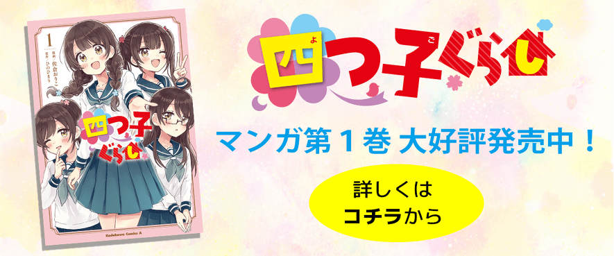 角川つばさ文庫の大人気シリーズ「四つ子ぐらし」のボイスドラマです。つばさ文庫第1巻の、姉妹の出会いと、四人ぐらしのはじまりを、声と動画でもう一回楽しもう♪