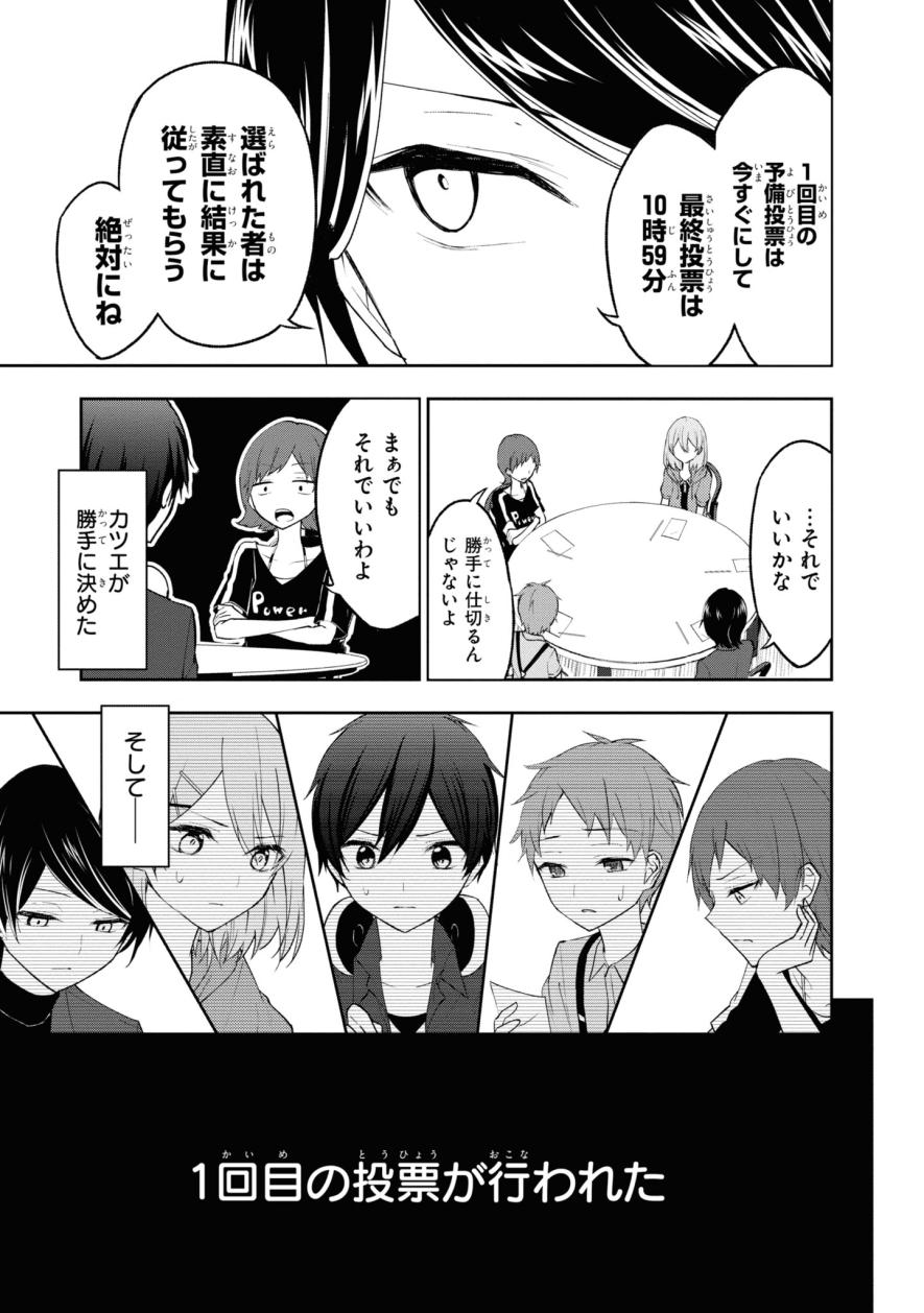 前の回 一覧へ ものがたり 2025.12.12 絶体絶命ゲーム 第8話 「いらない人間」選挙 角川つばさ文庫 この記事をブックマークする 第9話につづく(12月19日公開予定) コミック1~2巻 絶賛発売中! 絶体絶命ゲーム 1 絶体絶命ゲーム 1 漫画:佐藤 まひろ 原作:藤 ダリオ キャラクター原案:さいね 【定価】 693円(本体630円+税) 【発売日】 2021年03月27日 【サイズ】 B6判 【ISBN】 9784046802743 ためし読み 紙の本を買う 電子書籍を買う 絶体絶命ゲーム 2 絶体絶命ゲーム 2 漫画:佐藤 まひろ 原作:藤 ダリオ キャラクター原案:さいね 【定価】 704円(本体640円+税) 【発売日】 2021年10月27日 【サイズ】 B6判 【ISBN】 9784046807175 ためし読み 紙の本を買う 電子書籍を買う つばさ文庫版 絶賛発売中! 絶体絶命ゲーム 1億円争奪サバイバル 絶体絶命ゲーム 1億円争奪サバイバル 作:藤 ダリオ 絵:さいね 【定価】 本体680円(税別) 【発売日】 2017年2月15日 【サイズ】 新書判 【ISBN】 9784046316813 ためし読み 紙の本を買う 電子書籍を買う 1 2 この記事をブックマークする 前の回 一覧へ この記事をシェアする