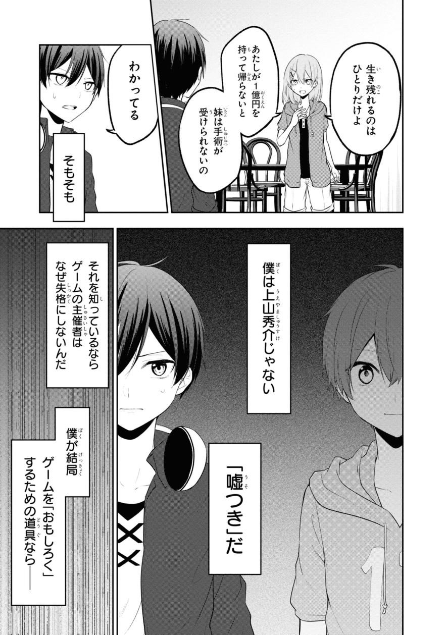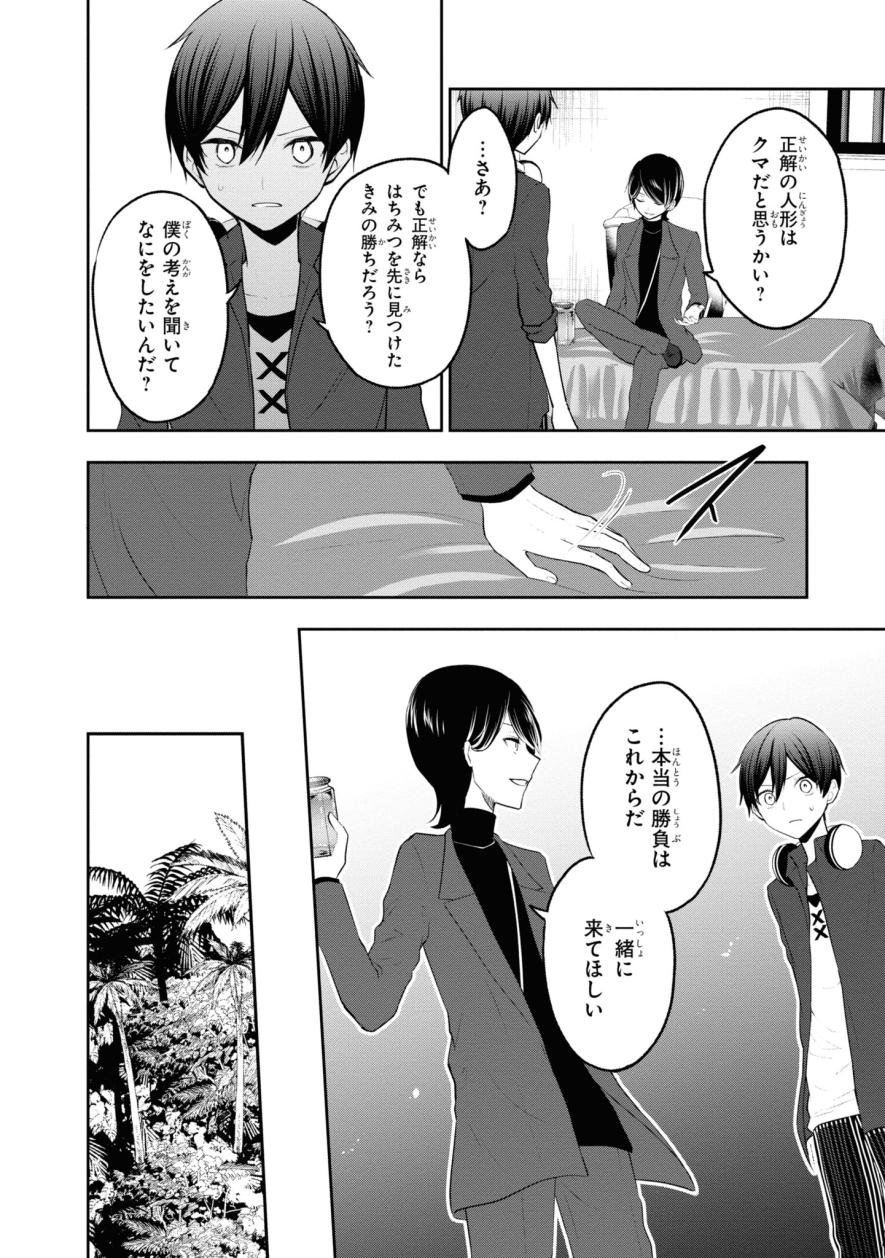 前の回 一覧へ ものがたり 2026.01.02 絶体絶命ゲーム 最終話 帰れるのはひとりだけ 角川つばさ文庫 この記事をブックマークする 最終ゲームの謎を解くため、絶命館の中を、バラバラにさまよい始めた4人……これまでに案内された部屋を1つずつめぐっていく春馬。このどこかに答えが――!! ※2026年2月28日までの期間限定公開!※ 次のページへ 1 2 この記事をブックマークする 前の回 一覧へ この記事をシェアする