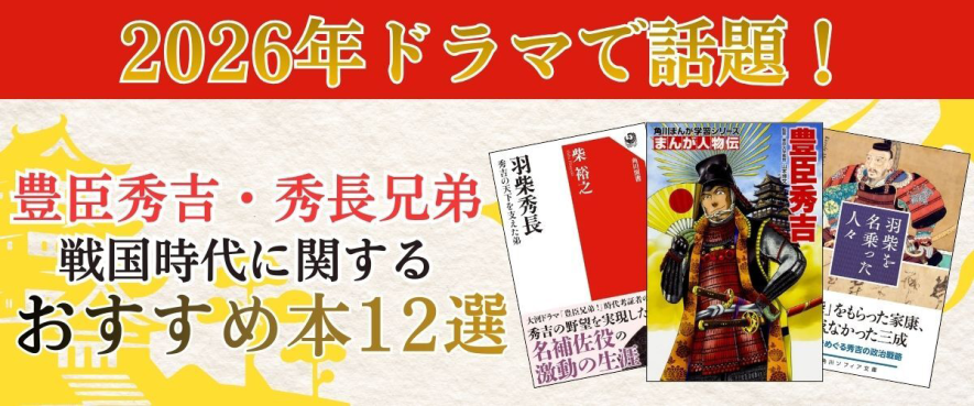 ドラマの時代考証者の著作をはじめ、秀吉を支えた家族や最強の家臣団についてくわしく書いた本のほか、激動の戦国時代をとにかく分かりやすくえがいた児童書など、12冊を集めました!