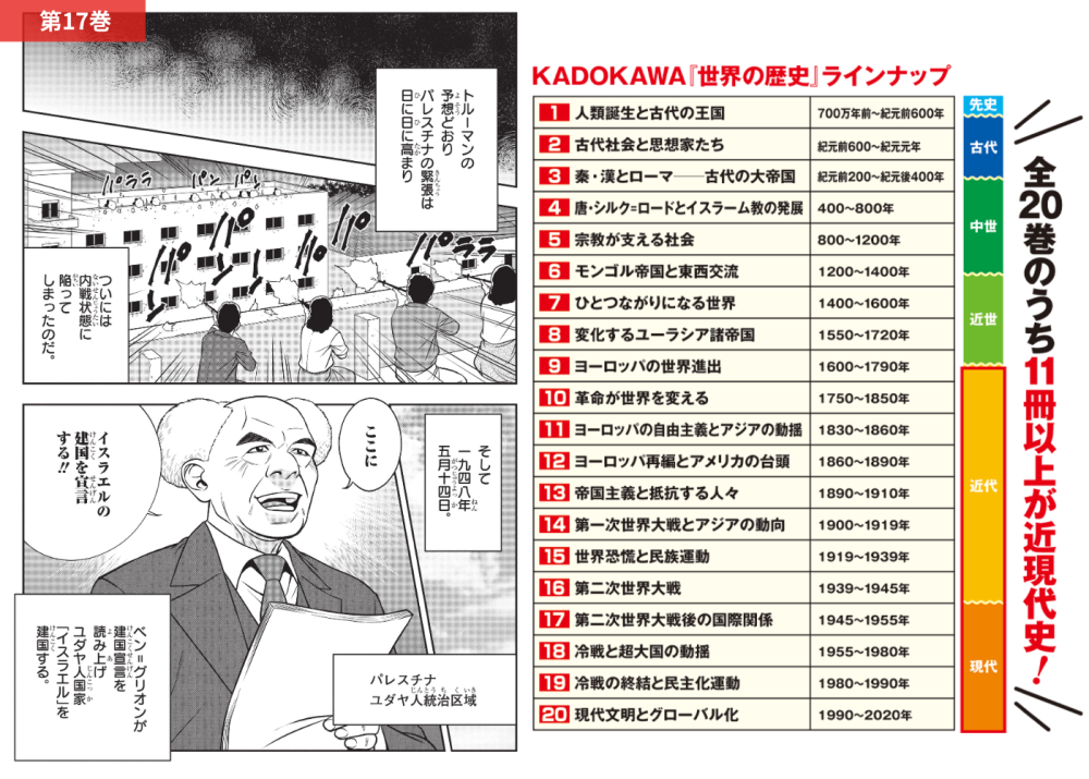 特長その 重要視される近現代史が11冊以上「歴史総合」が高校で必修化されるなど、近年ますます重要性を増している近現代史。本シリーズでは、全20巻のうち11巻以上が近現代史という充実のラインナップ!