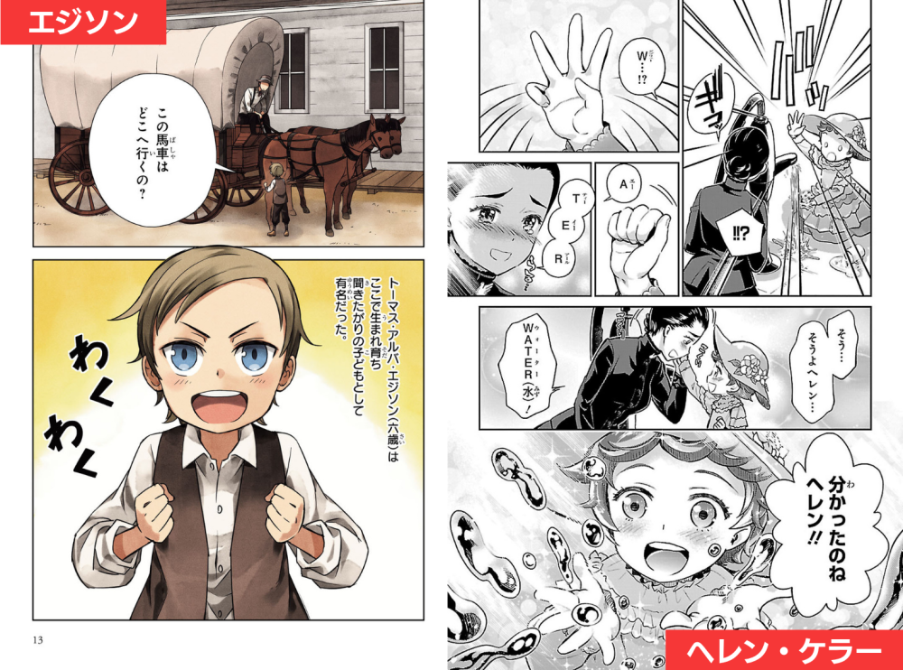まんがは細部までこだわった描写で読みごたえがあり、当時の風景やファッション、空気感までいきいきと伝わってくる、臨場感あふれる伝記まんがです。